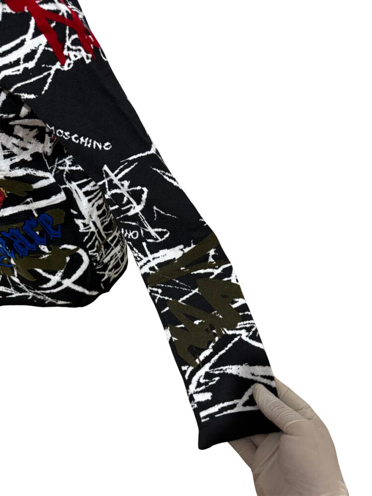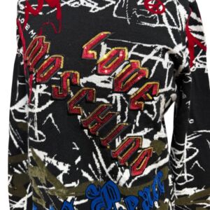 Blusa de linha repleta de patches e bordados Love Moschino.