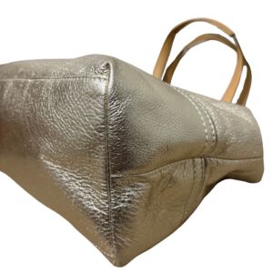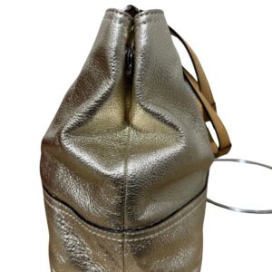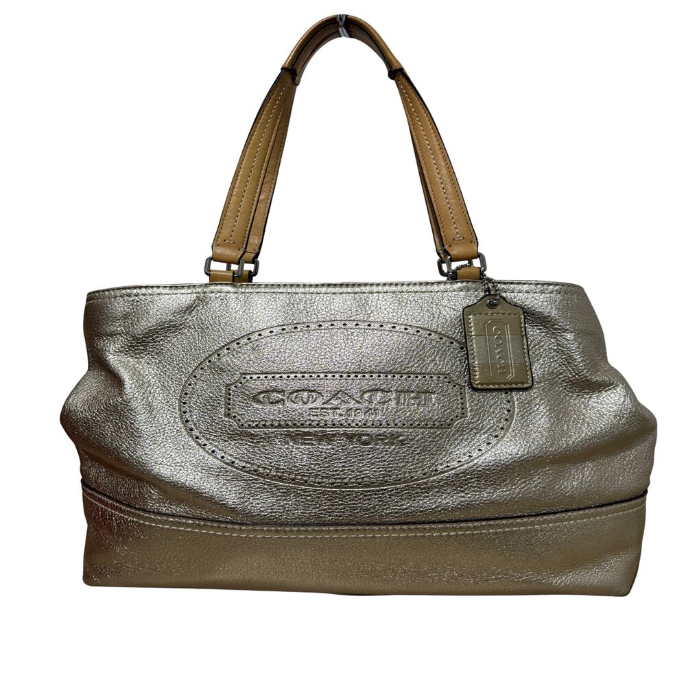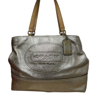 Bolsa Coach tote em couro dourado e logo frontal