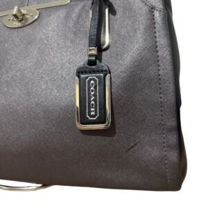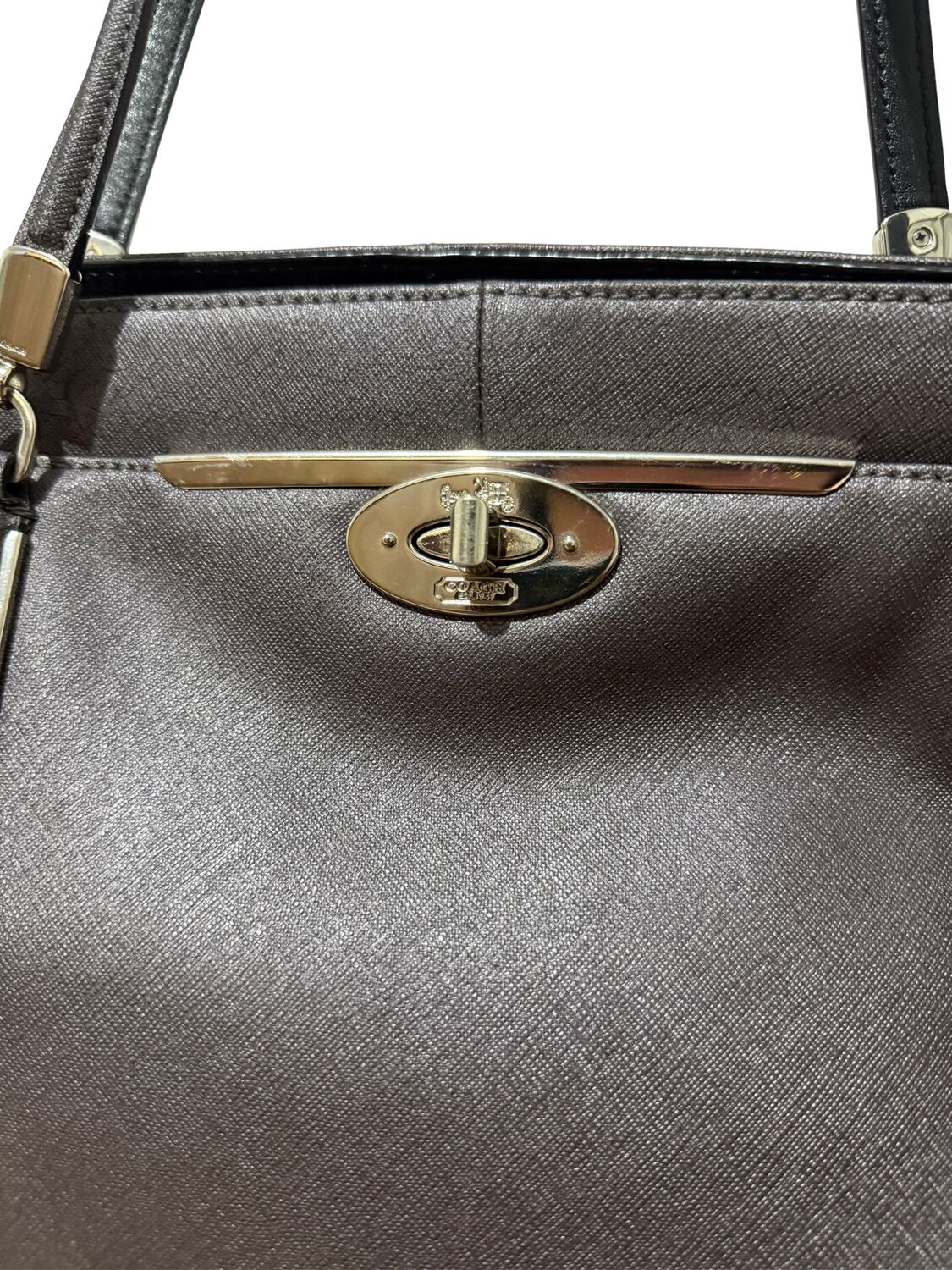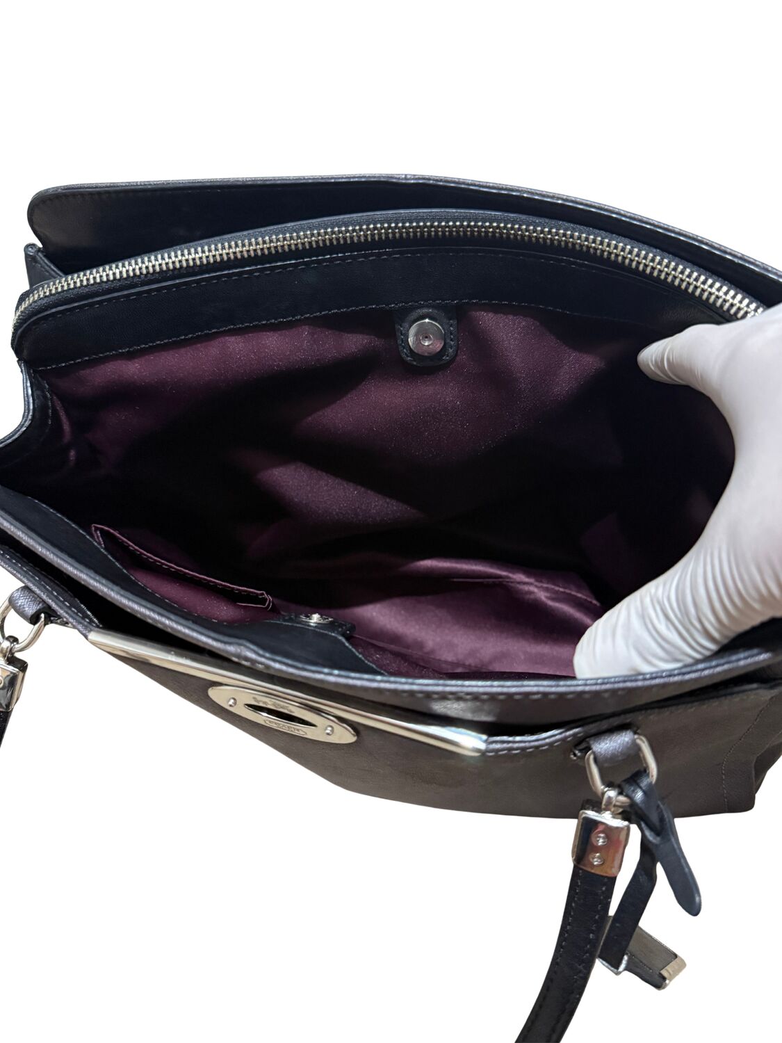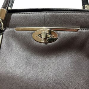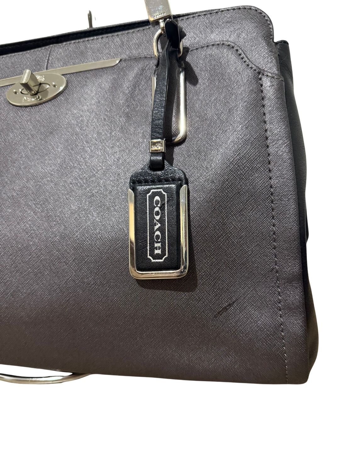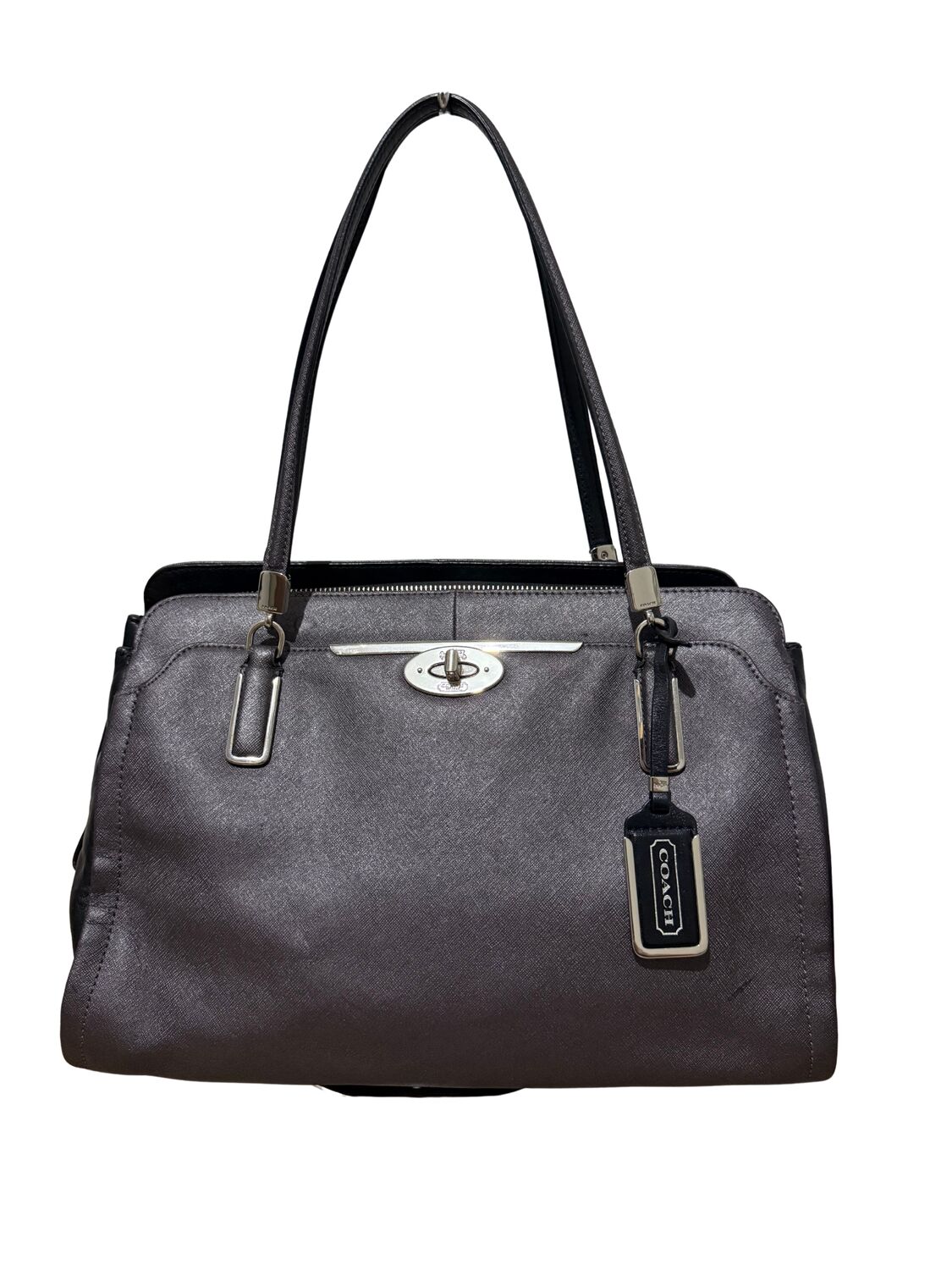 Bolsa Coach em tom metalizado com várias divisórias internas.