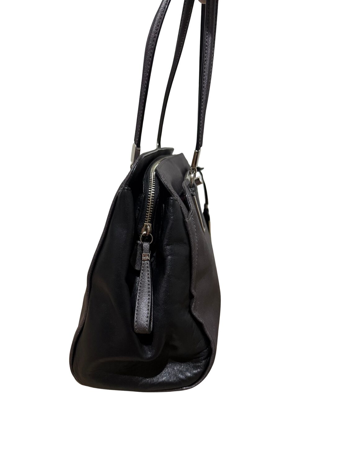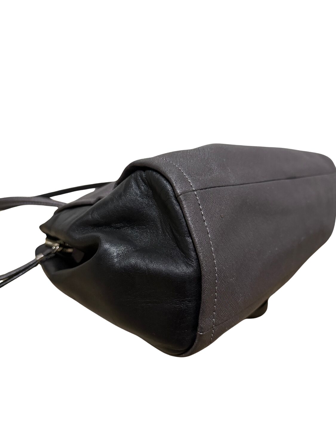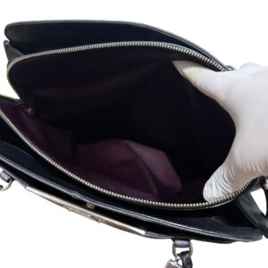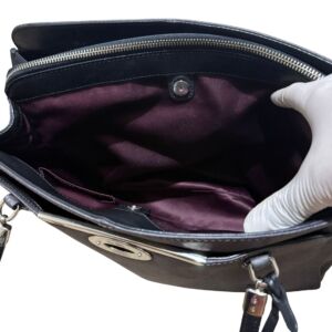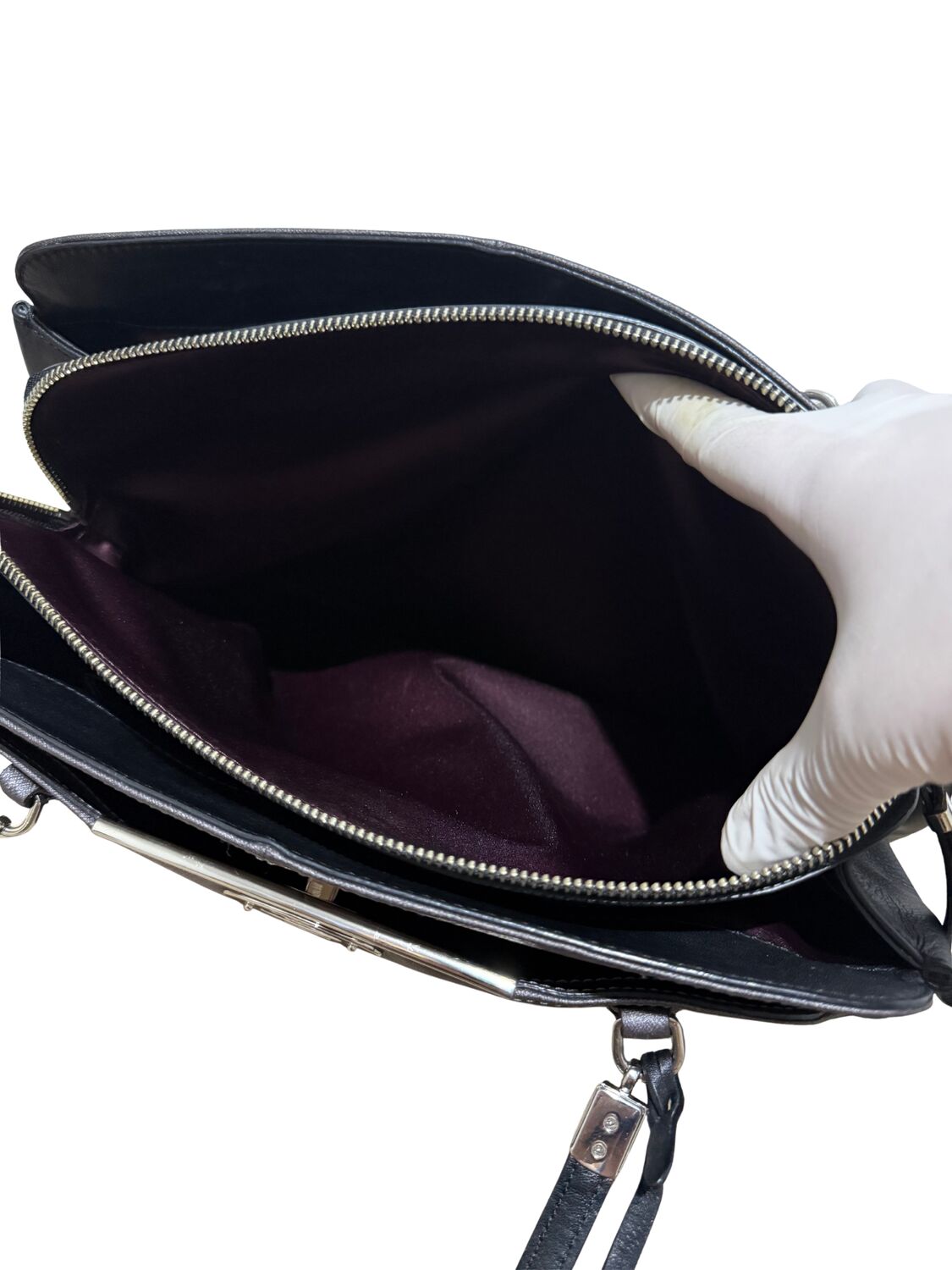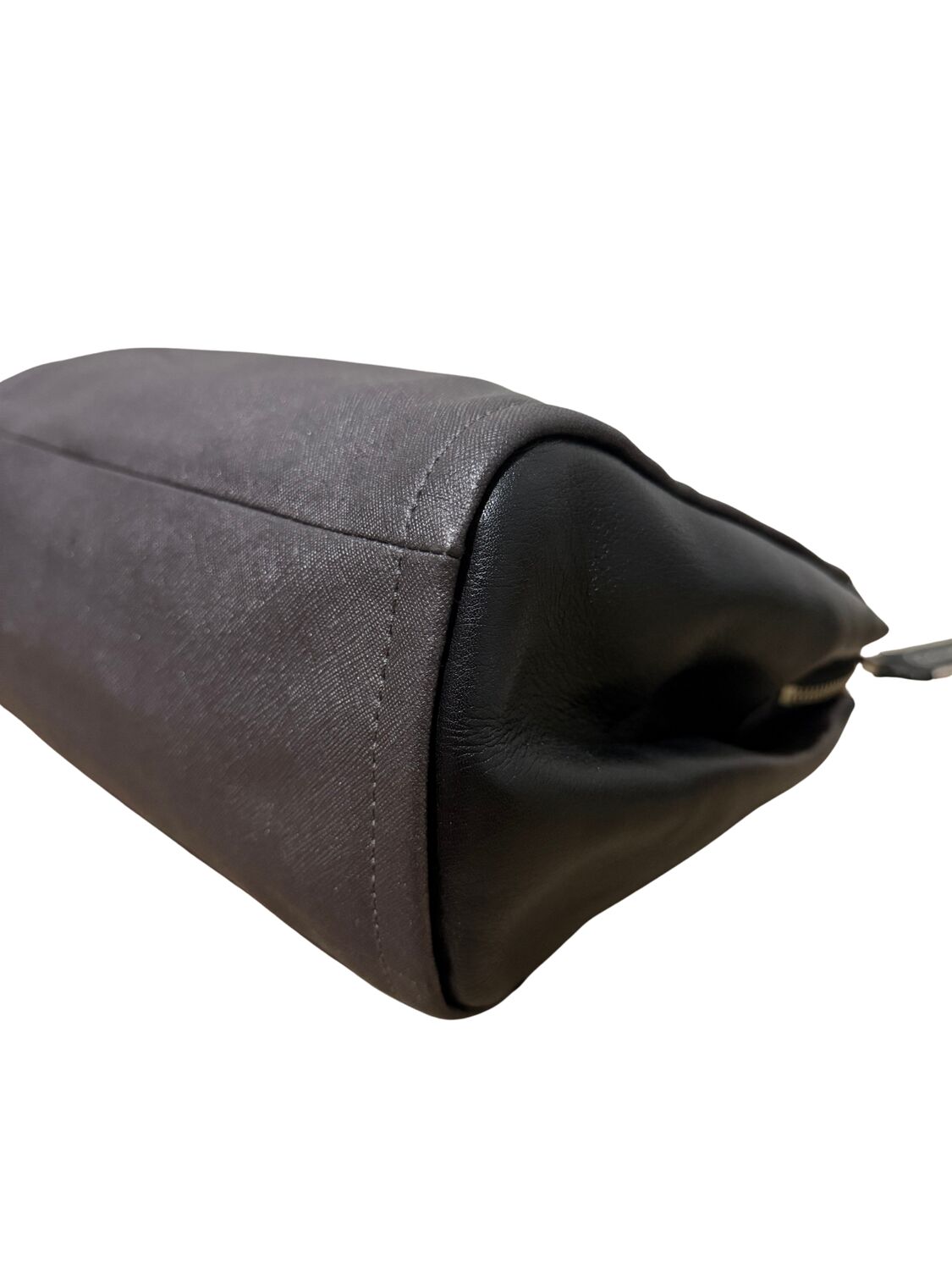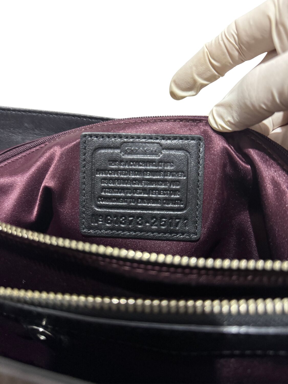 Bolsa Coach em tom metalizado com várias divisórias internas.