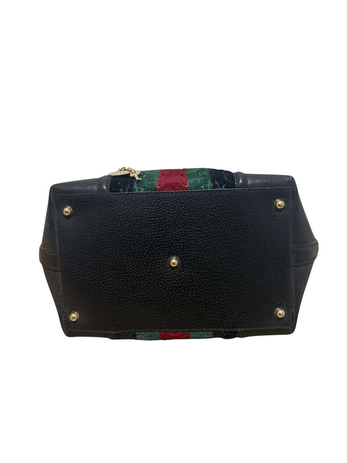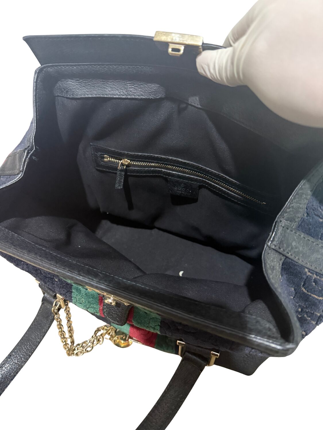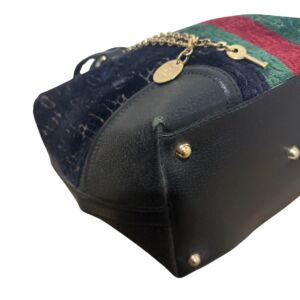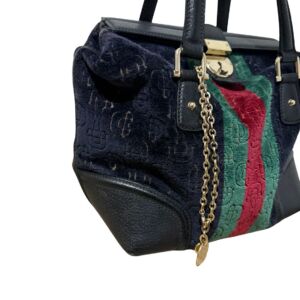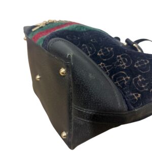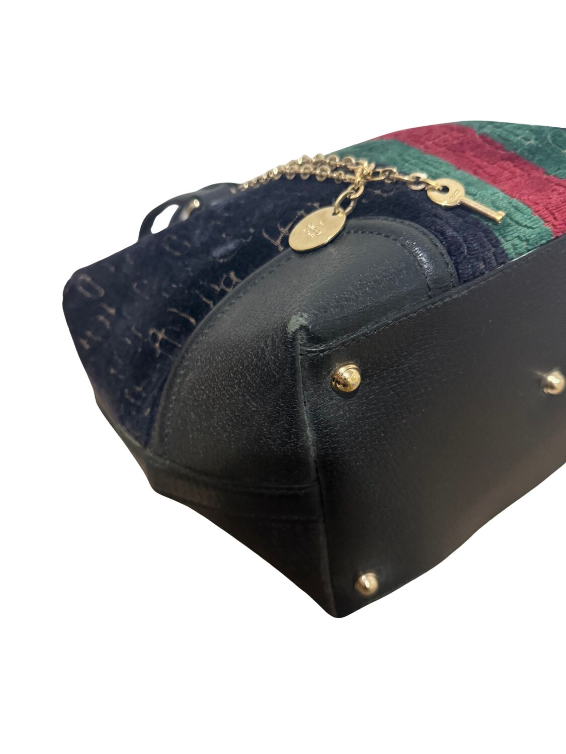 Bolsa Gucci vintage tote com logos horsebit em veludo e faixa web.