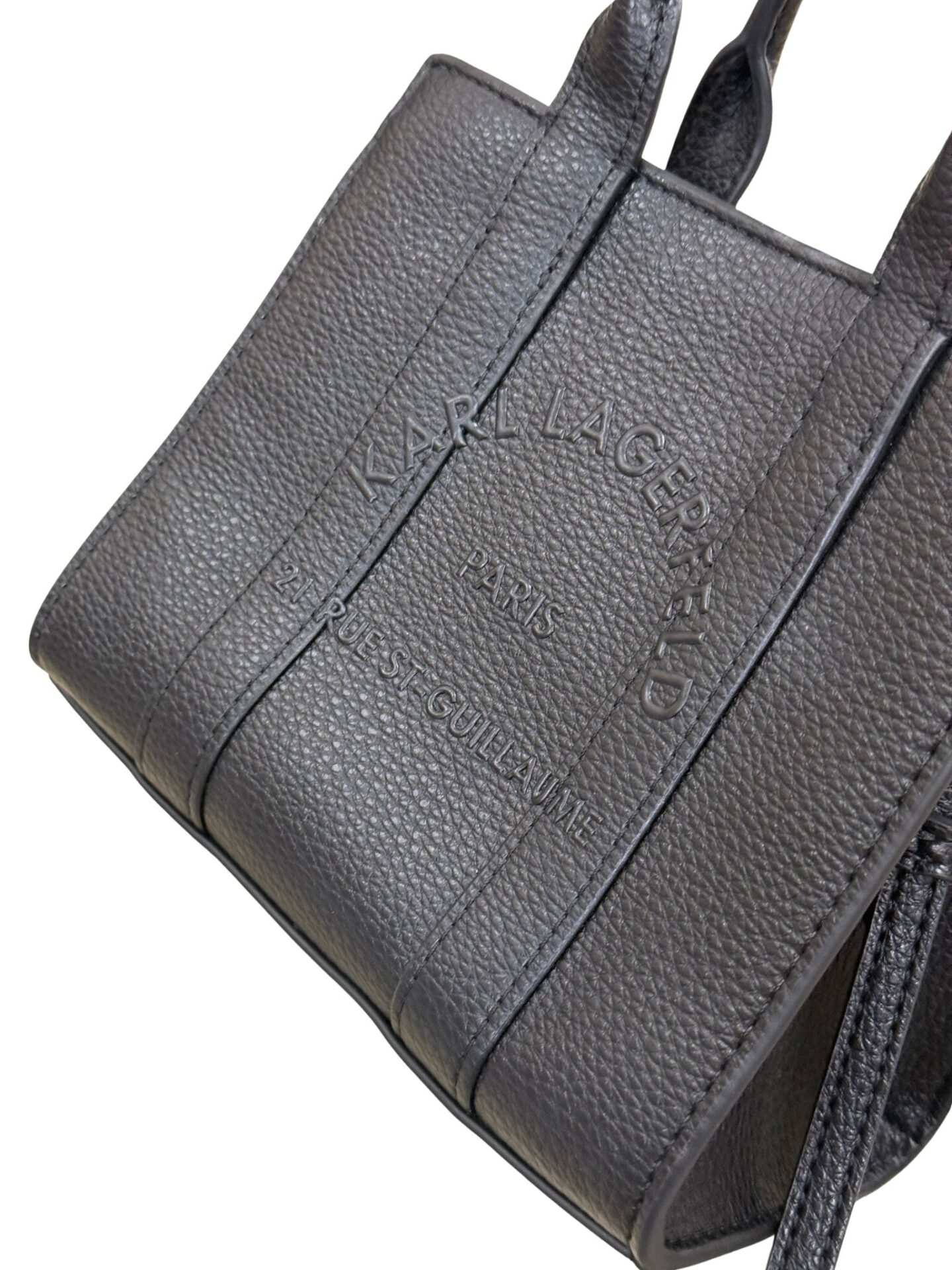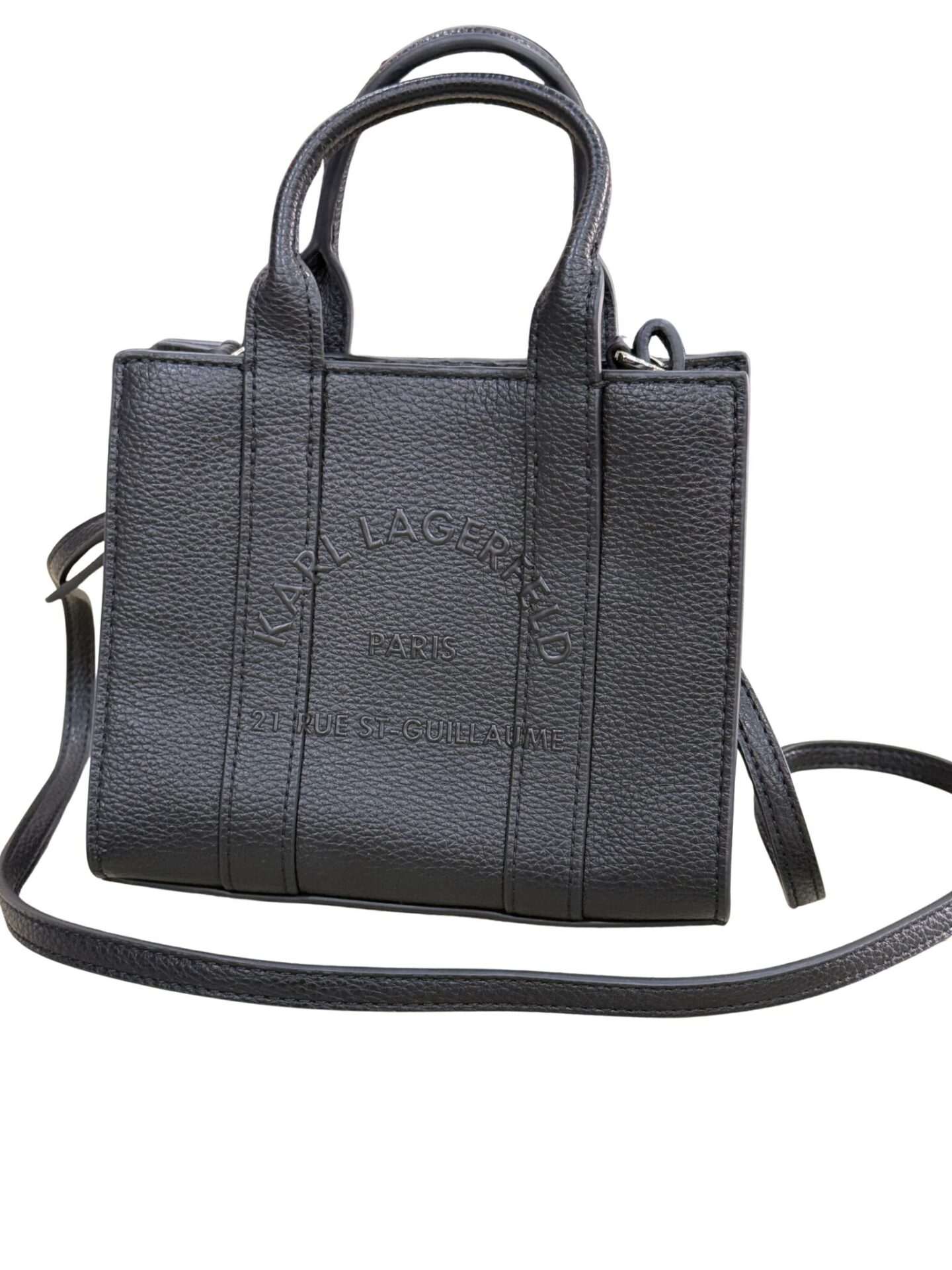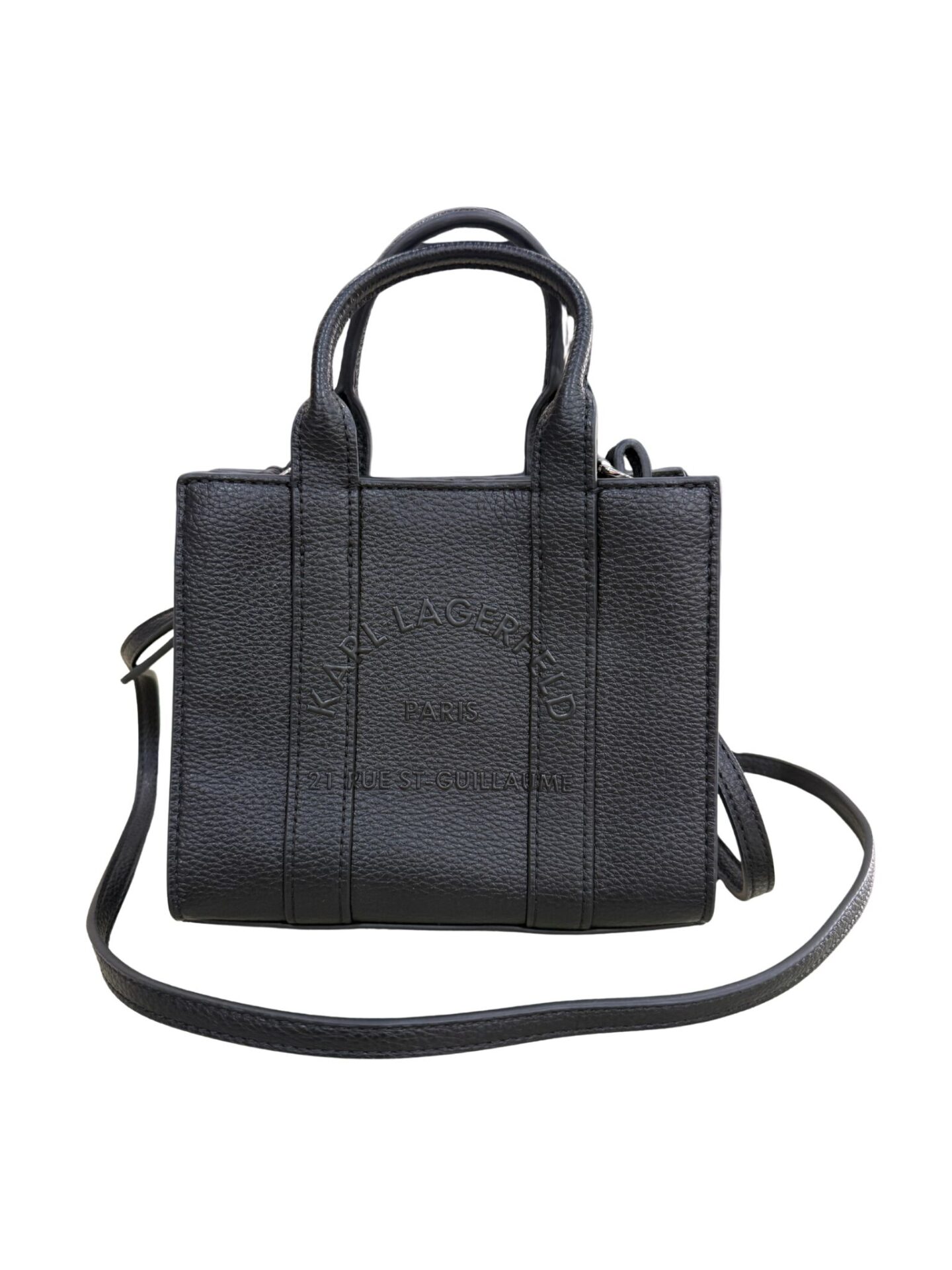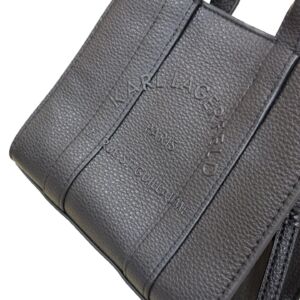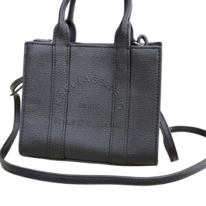 Bolsa Karl Lagerfeld em couro preto com logo frontal.
