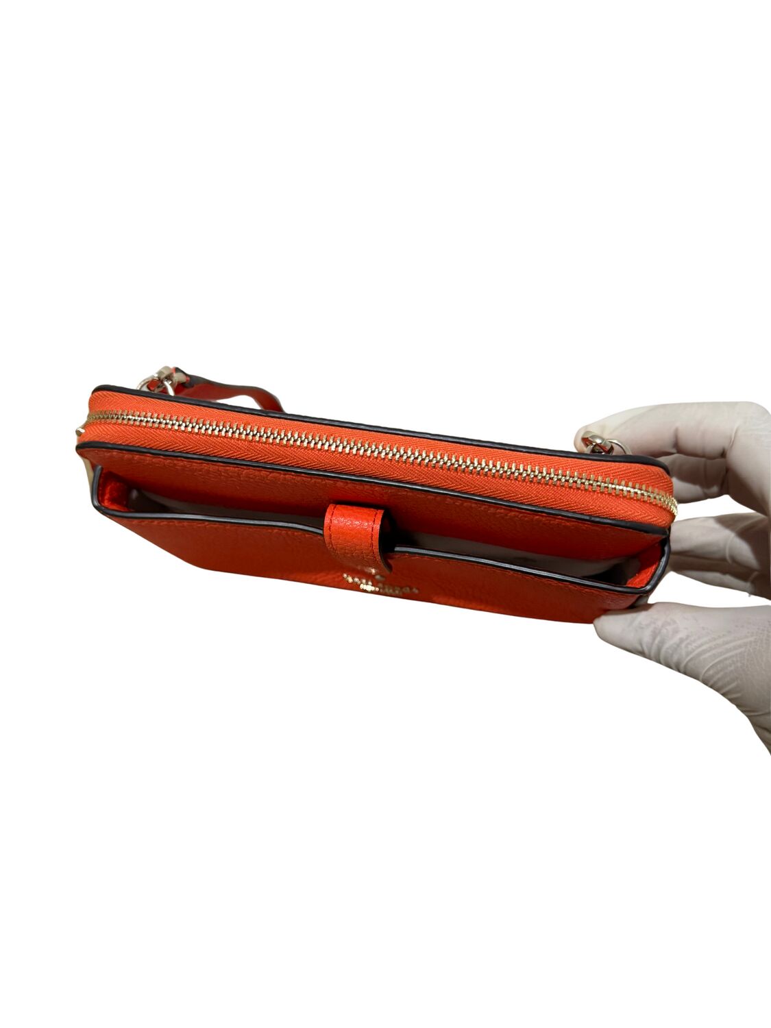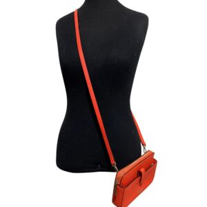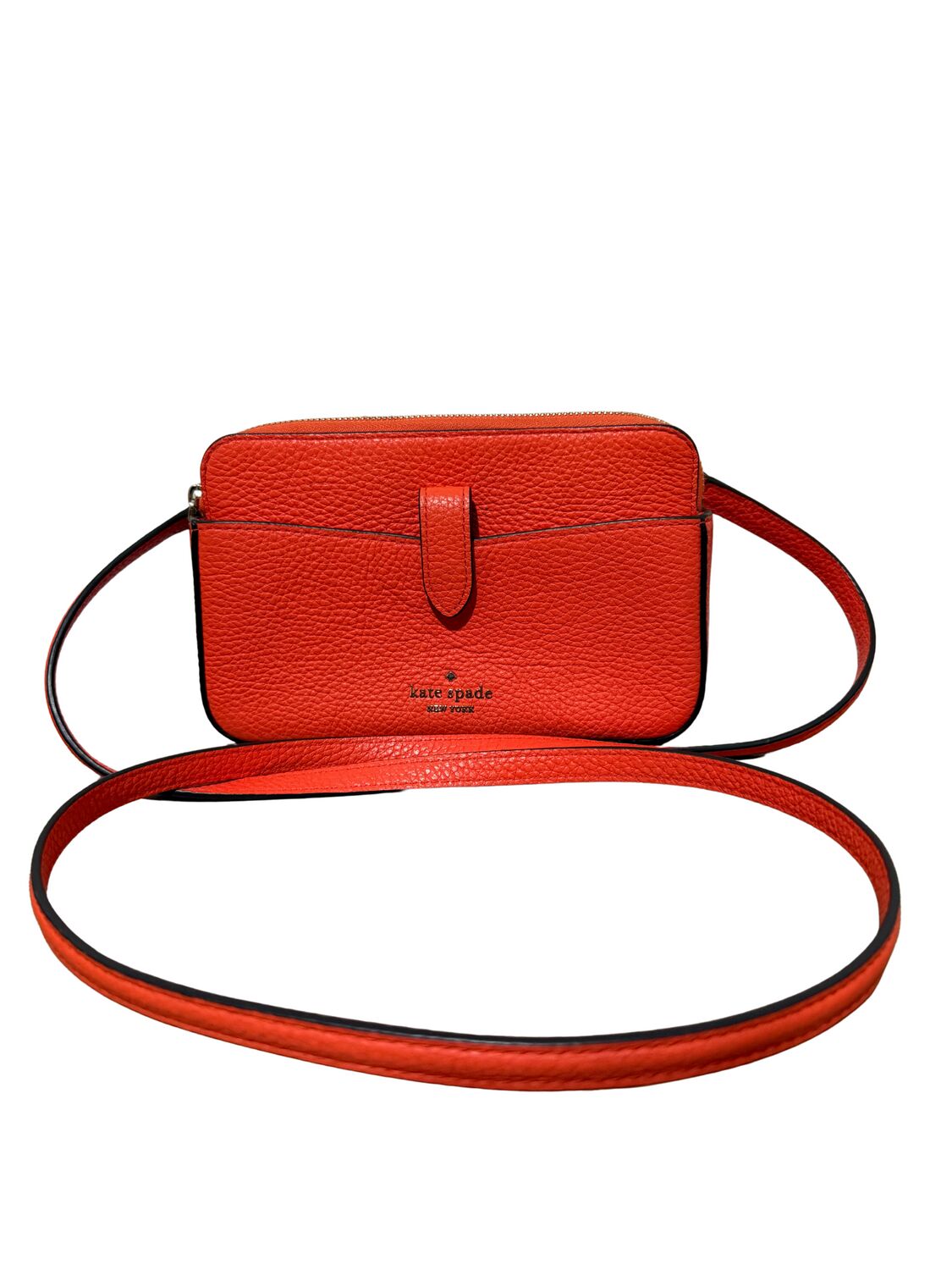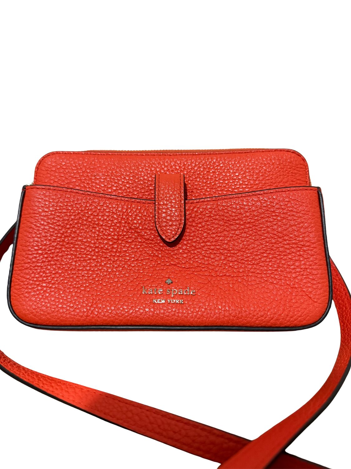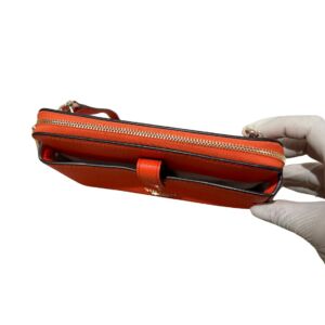 Bolsa Kate Spade em couro laranja crossbody e logo frontal.