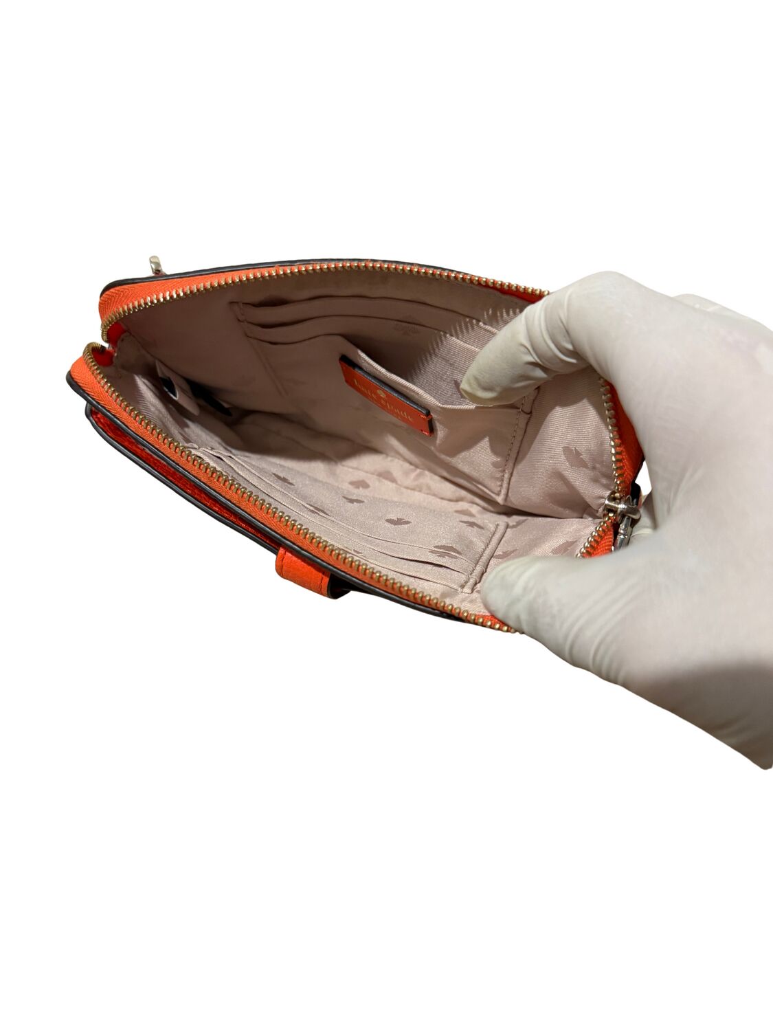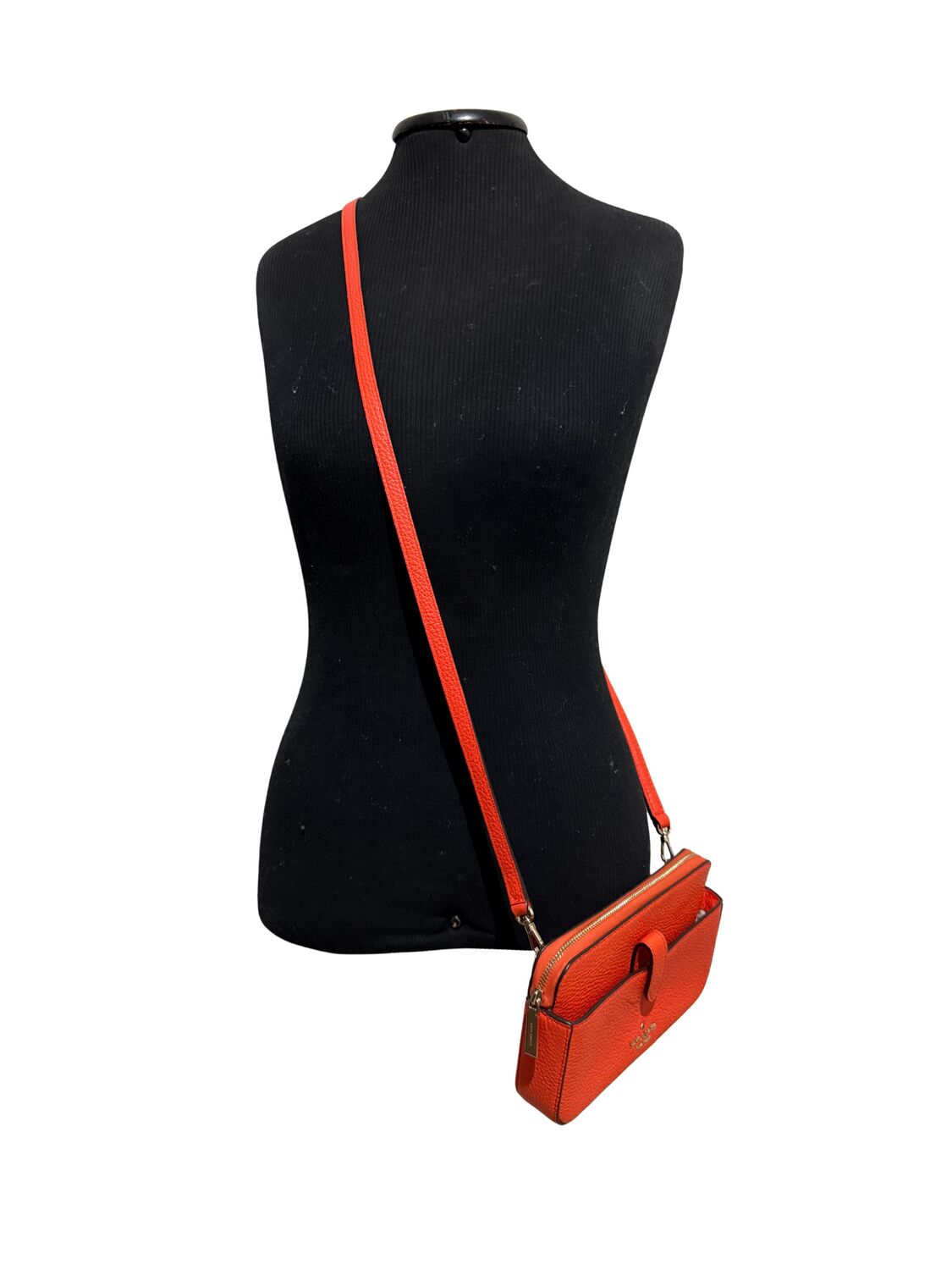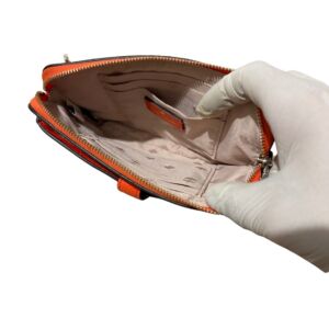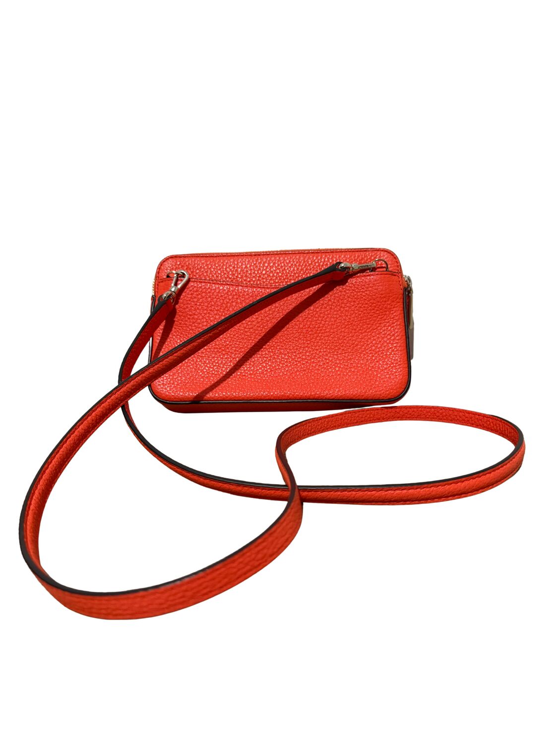 Bolsa Kate Spade em couro laranja crossbody e logo frontal.
