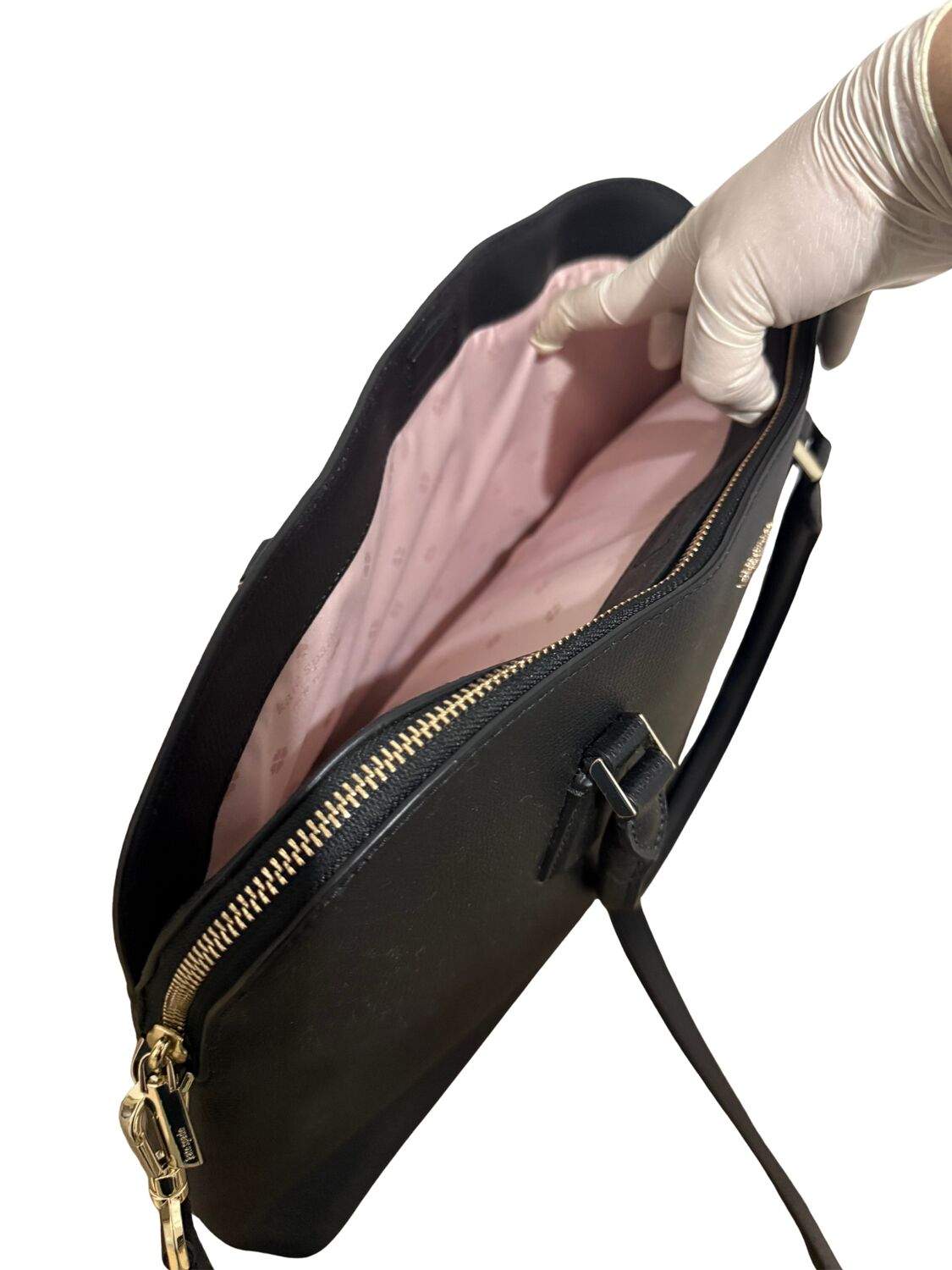 Bolsa Kate Spade em couro preto e ferragens douradas.
