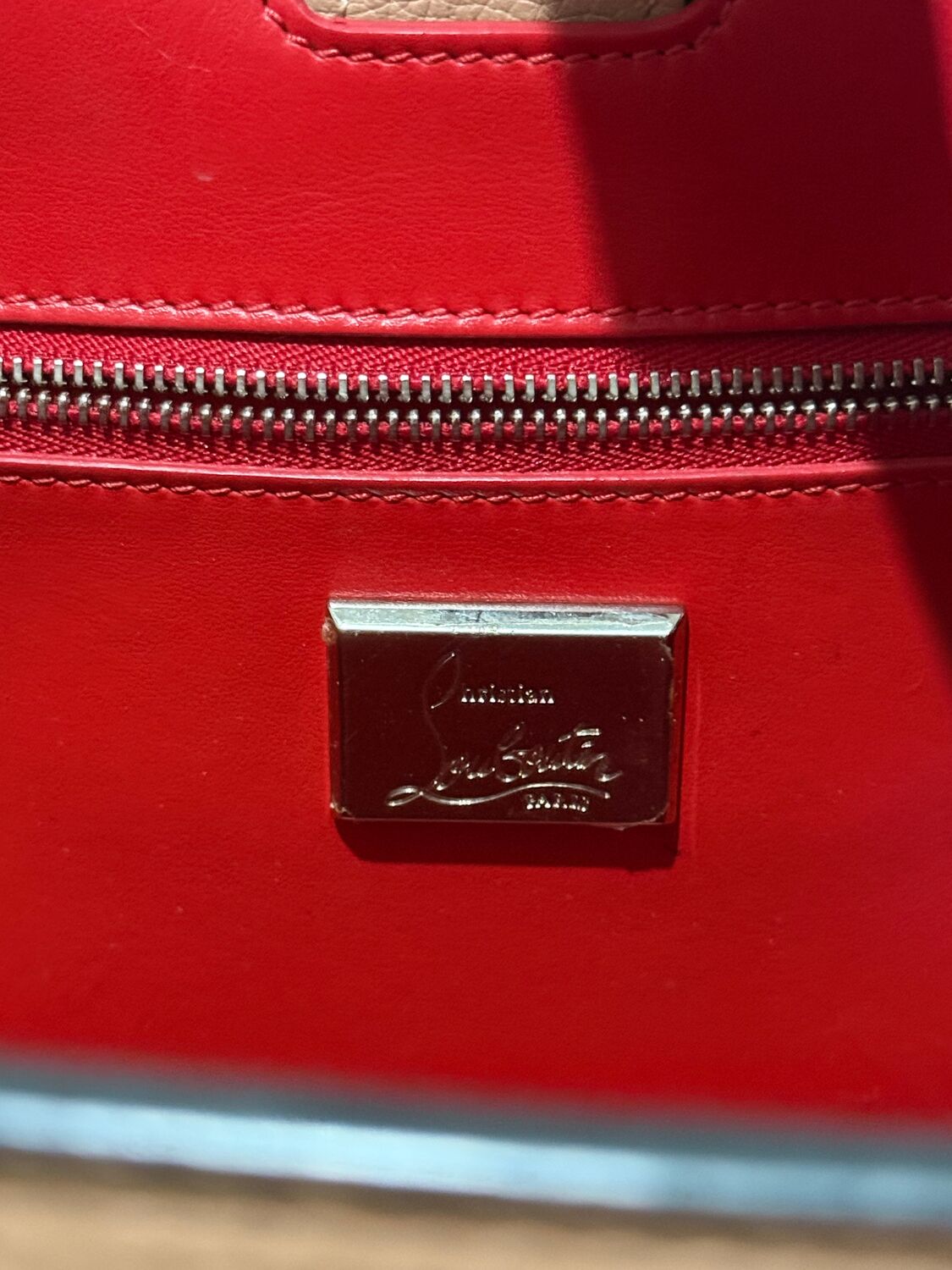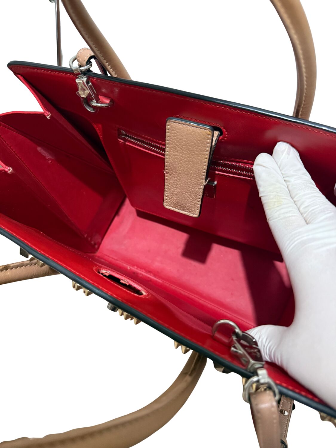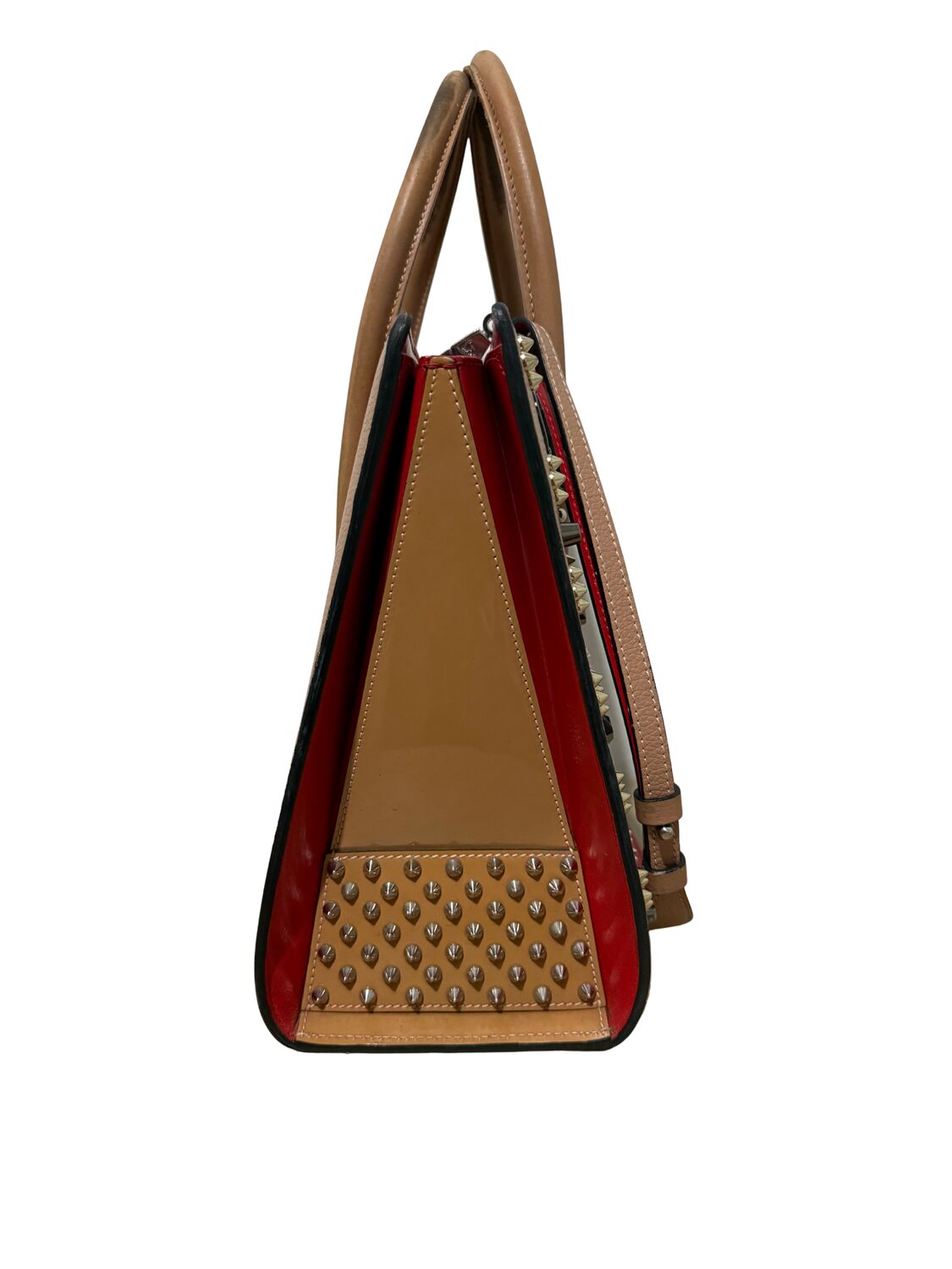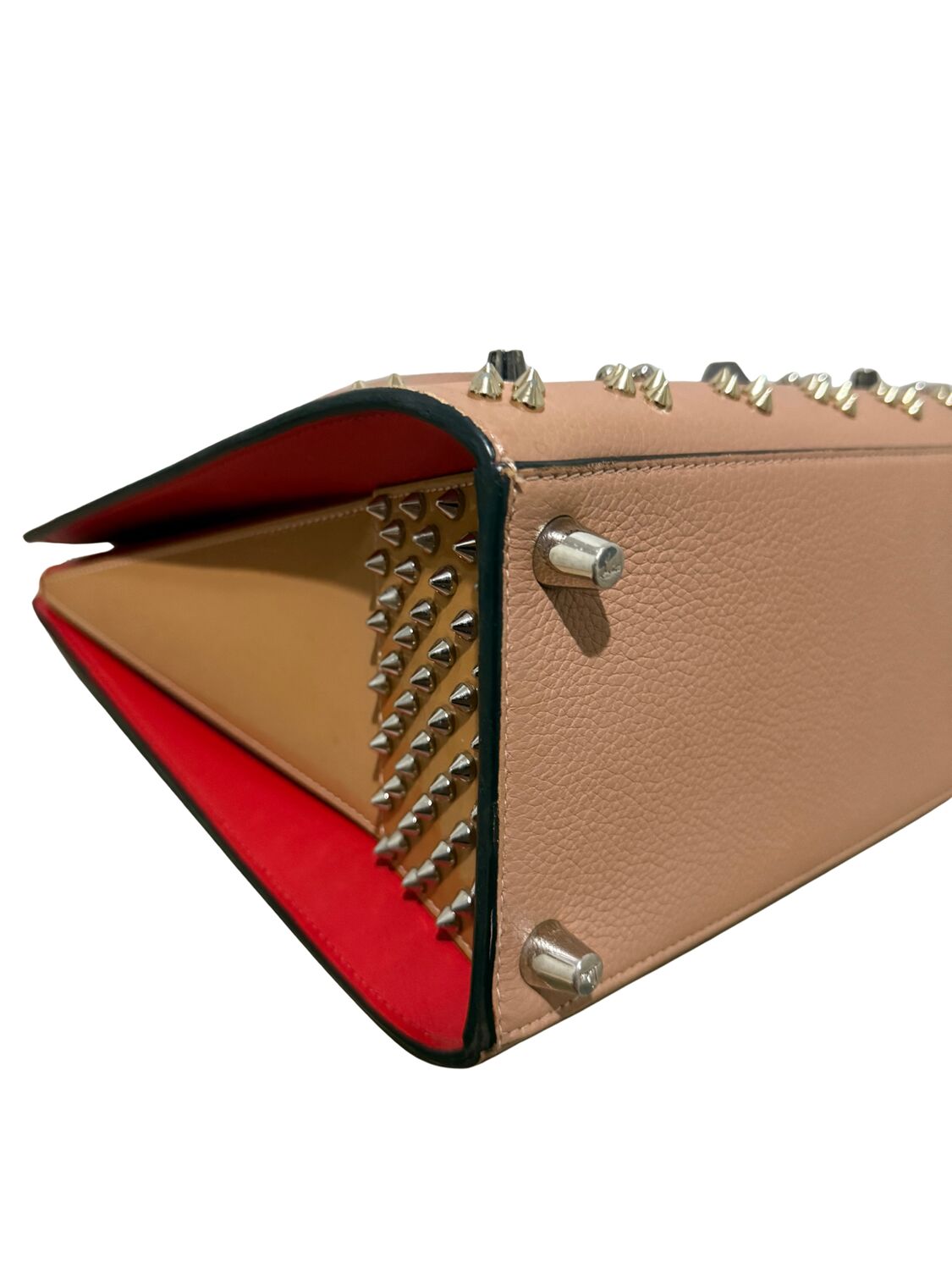Bolsa Louboutin em couro com diversas aplicações.