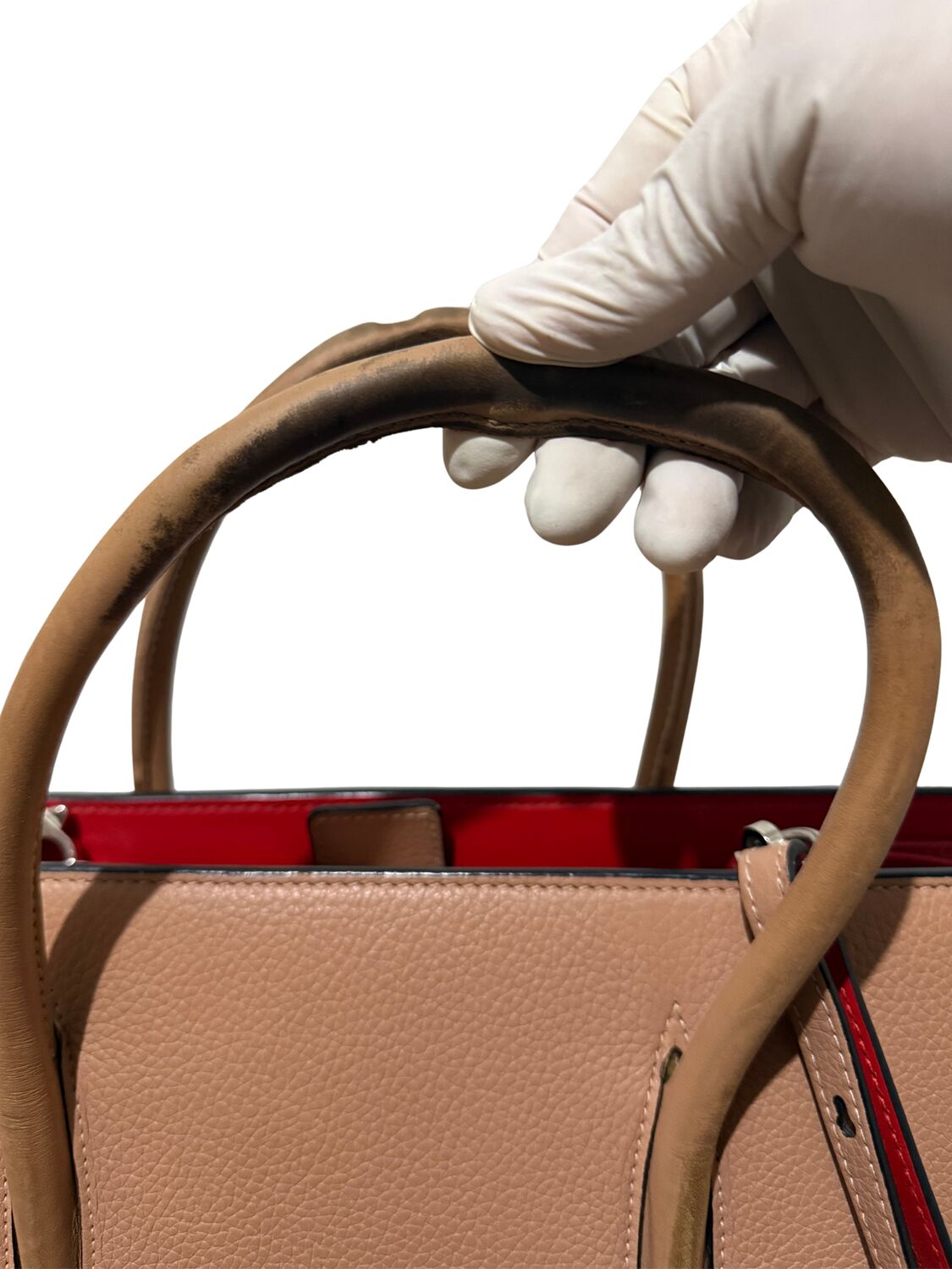 Em bom estado de conservação, apresenta avarias nas alças de mão e marcas de uso no couro interno.