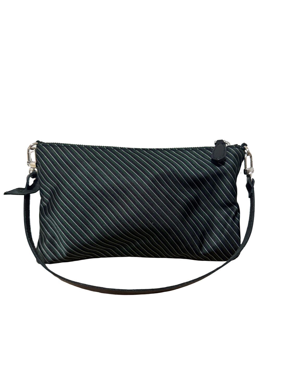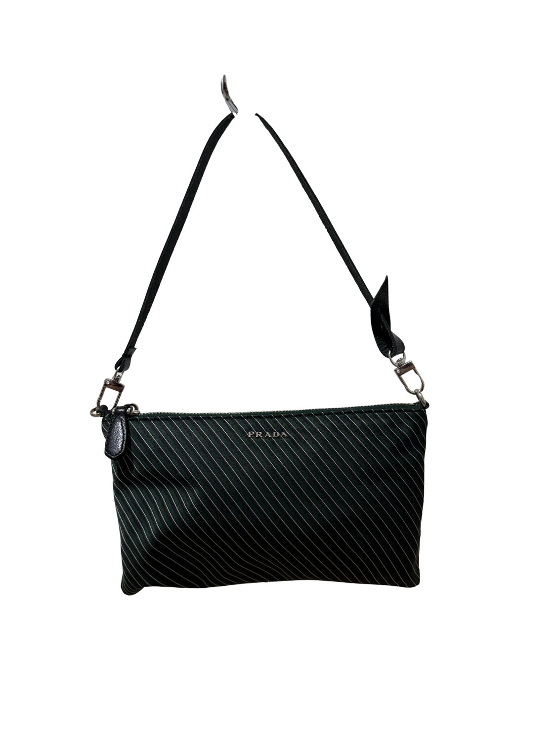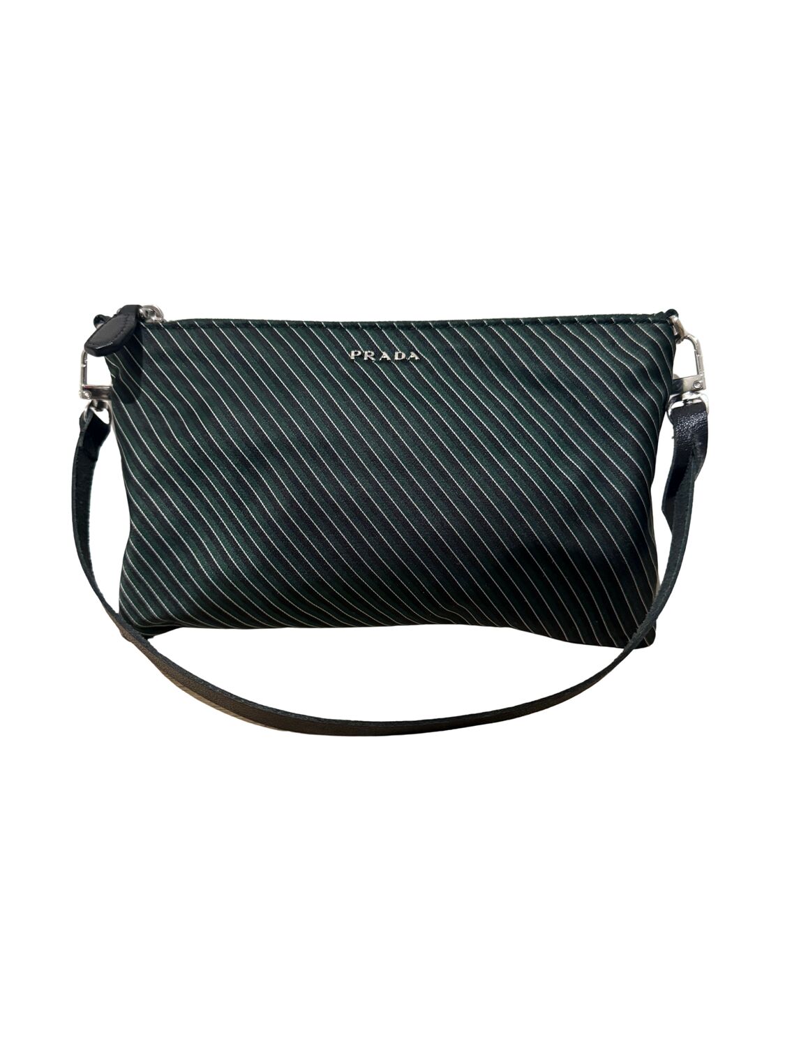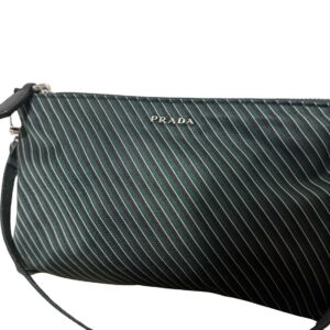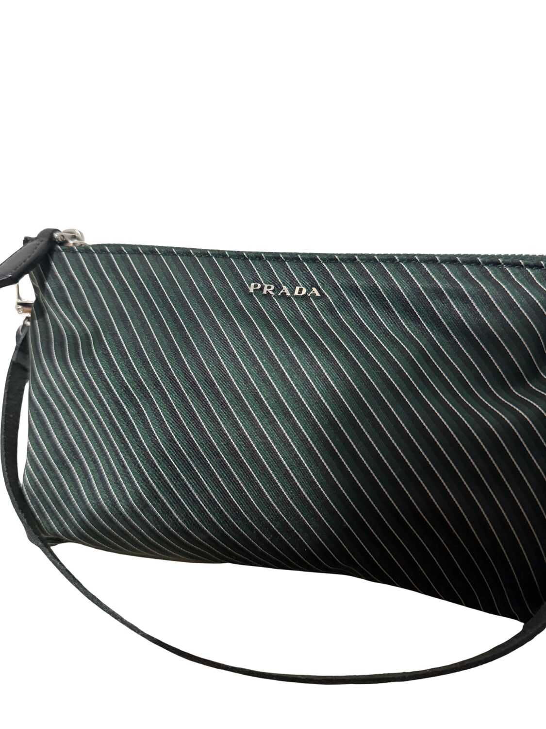 Bolsa Prada em nylon modelo pochette com listras e logo frontal.