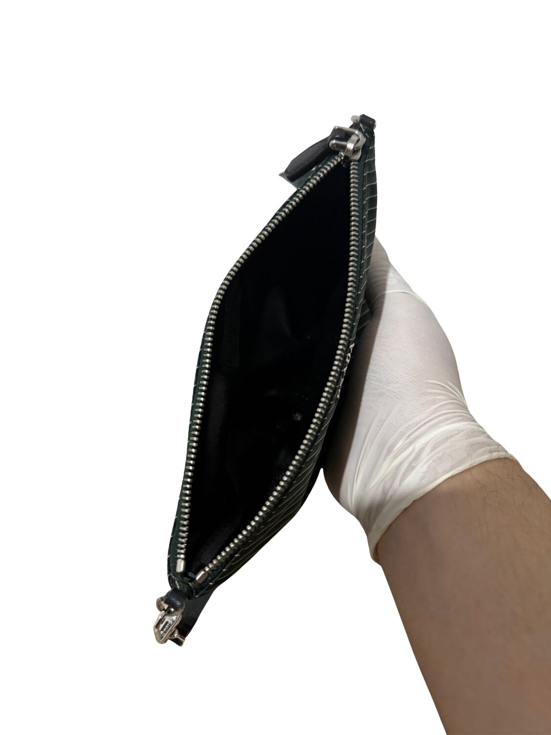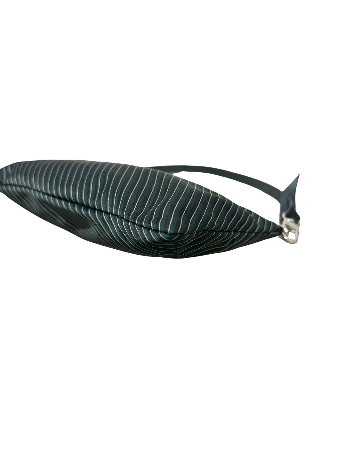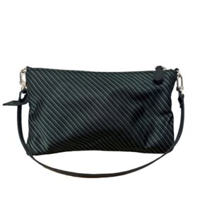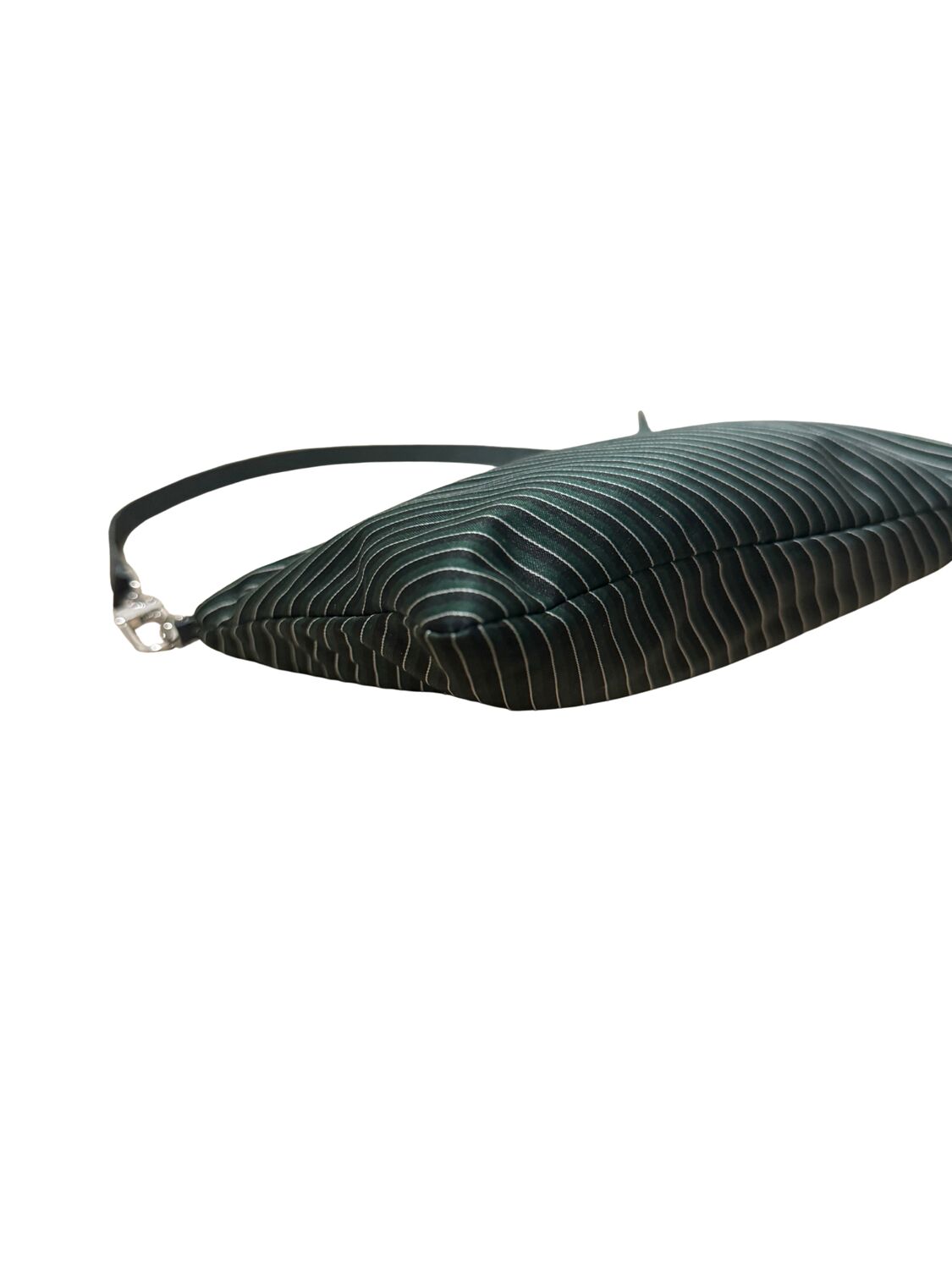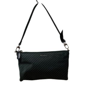 Bolsa Prada em nylon modelo pochette com listras e logo frontal.
