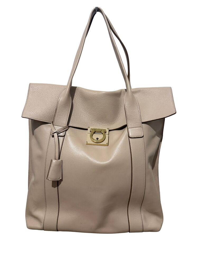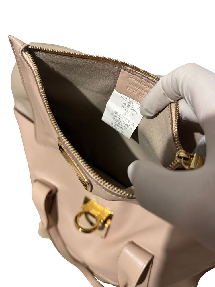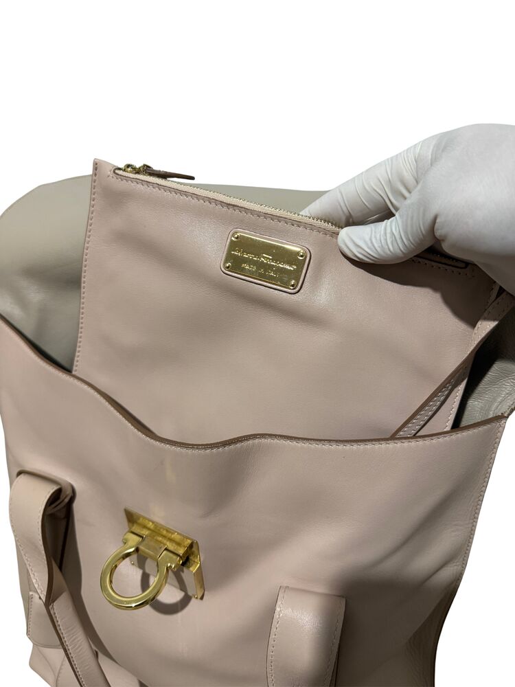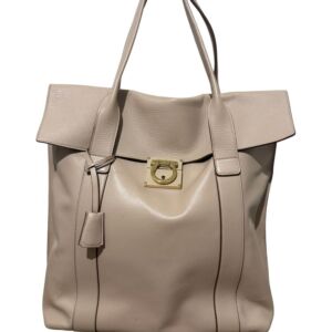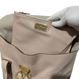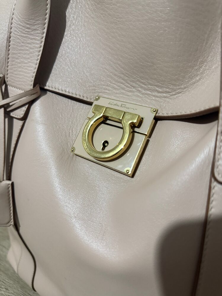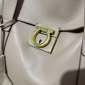 Bolsa Salvatore Ferragamo em couro off white com ferragem dourada frontal e clutch interna.