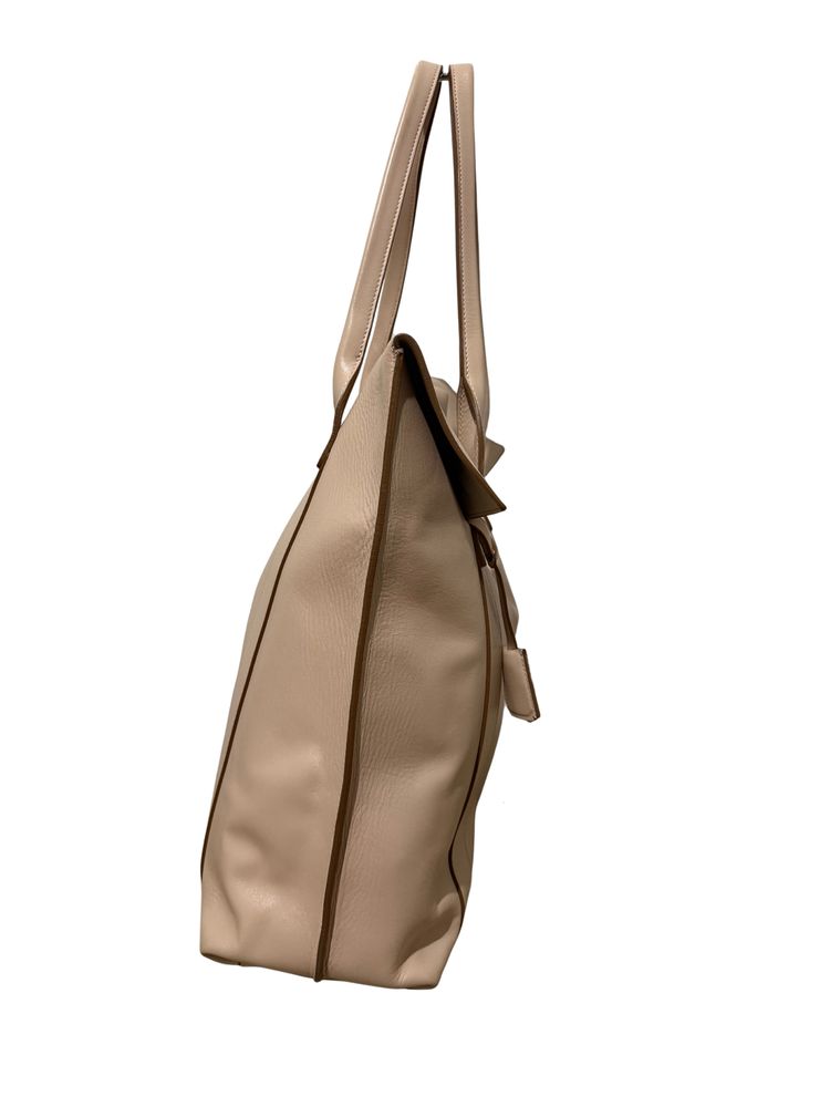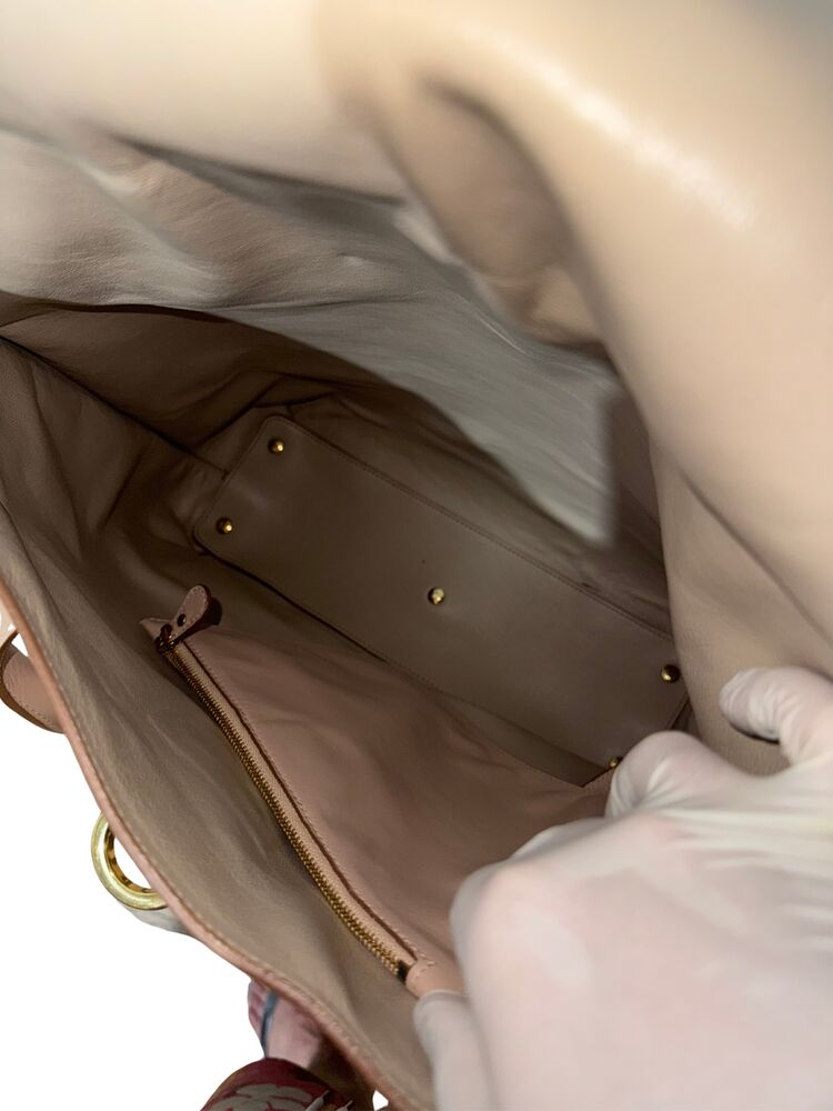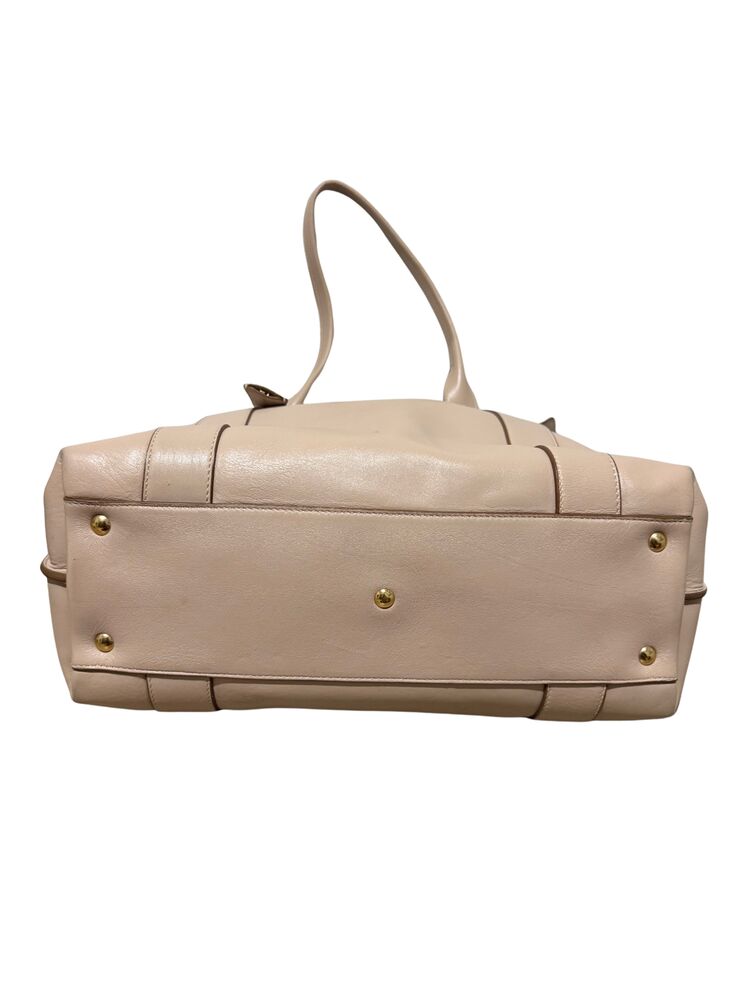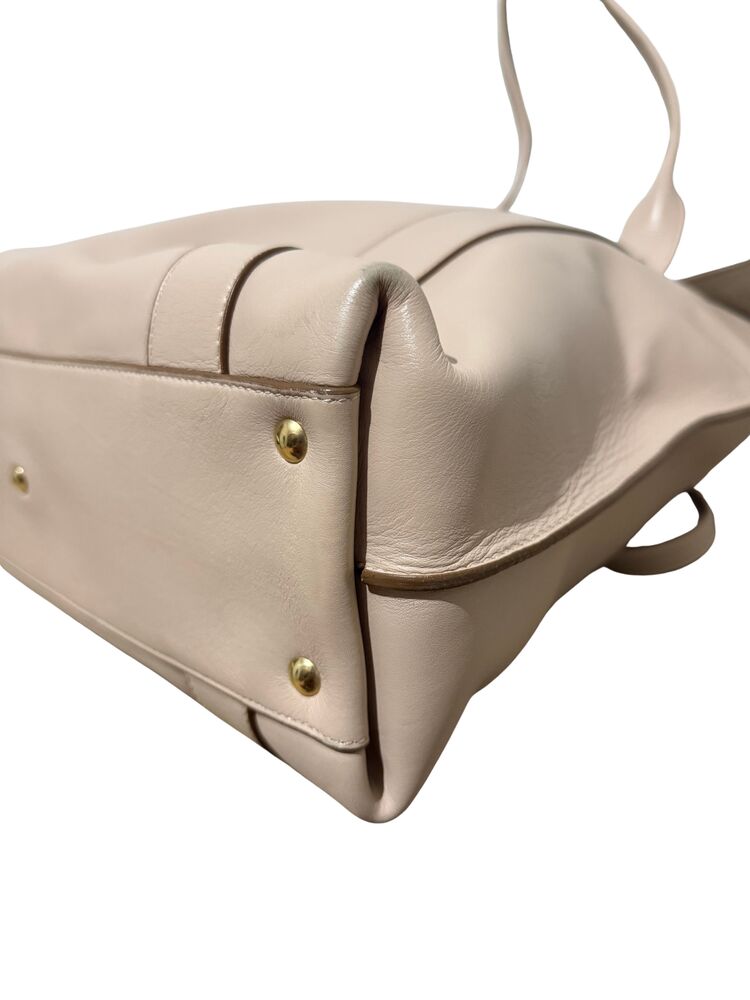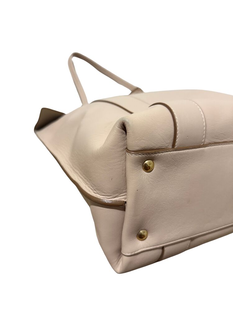 Bolsa Salvatore Ferragamo em couro off white com ferragem dourada frontal e clutch interna.