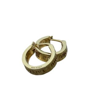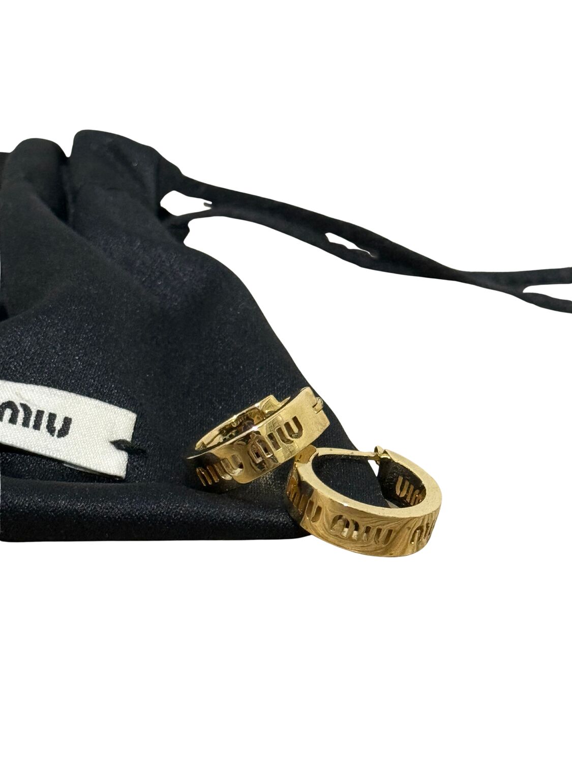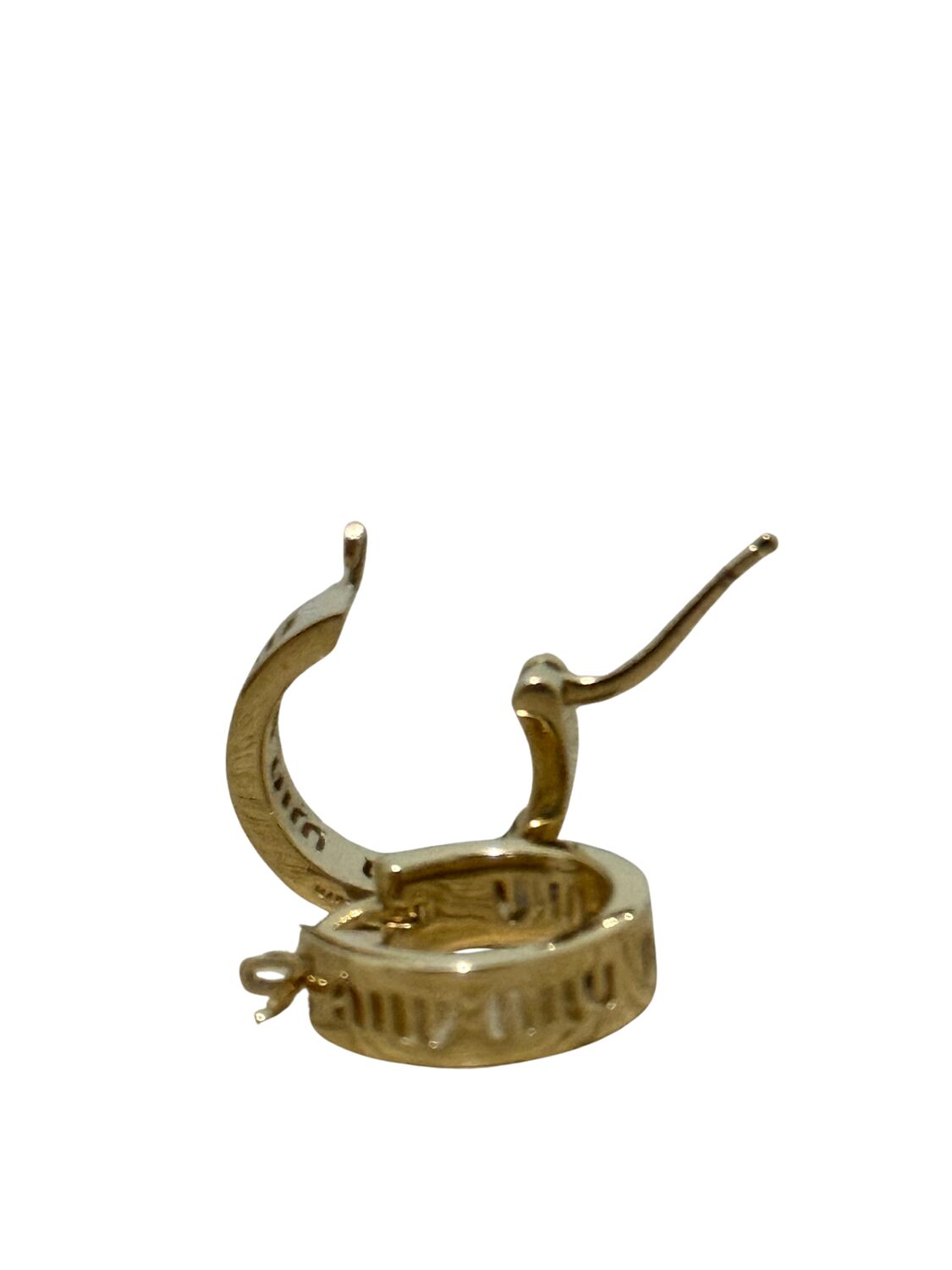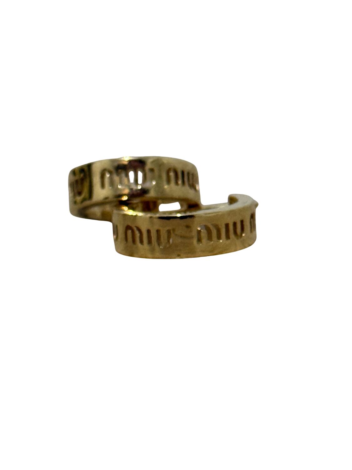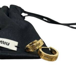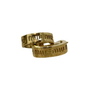 Brinco Miu Miu de axo inoxidável dourado com a logo impressa.