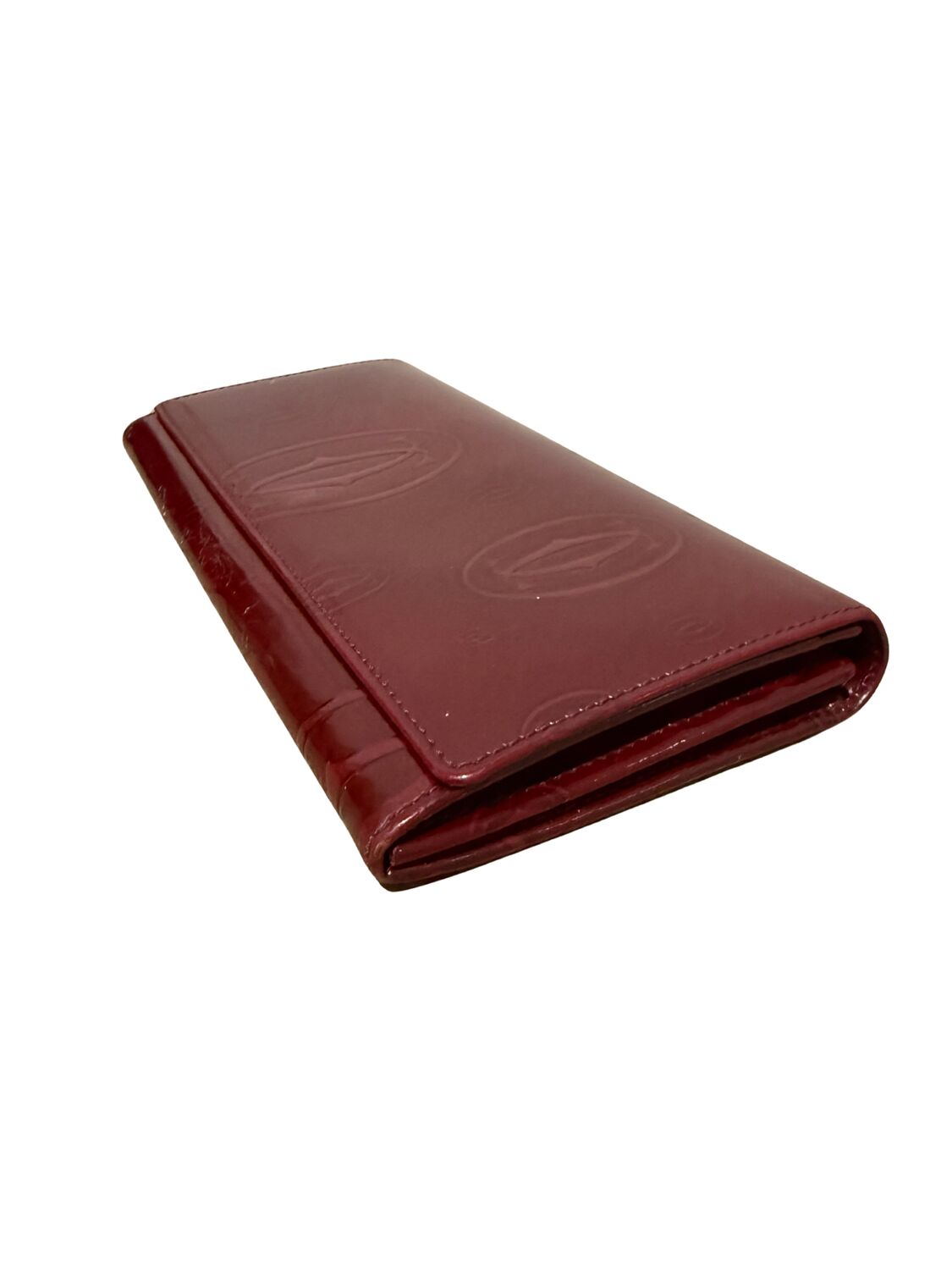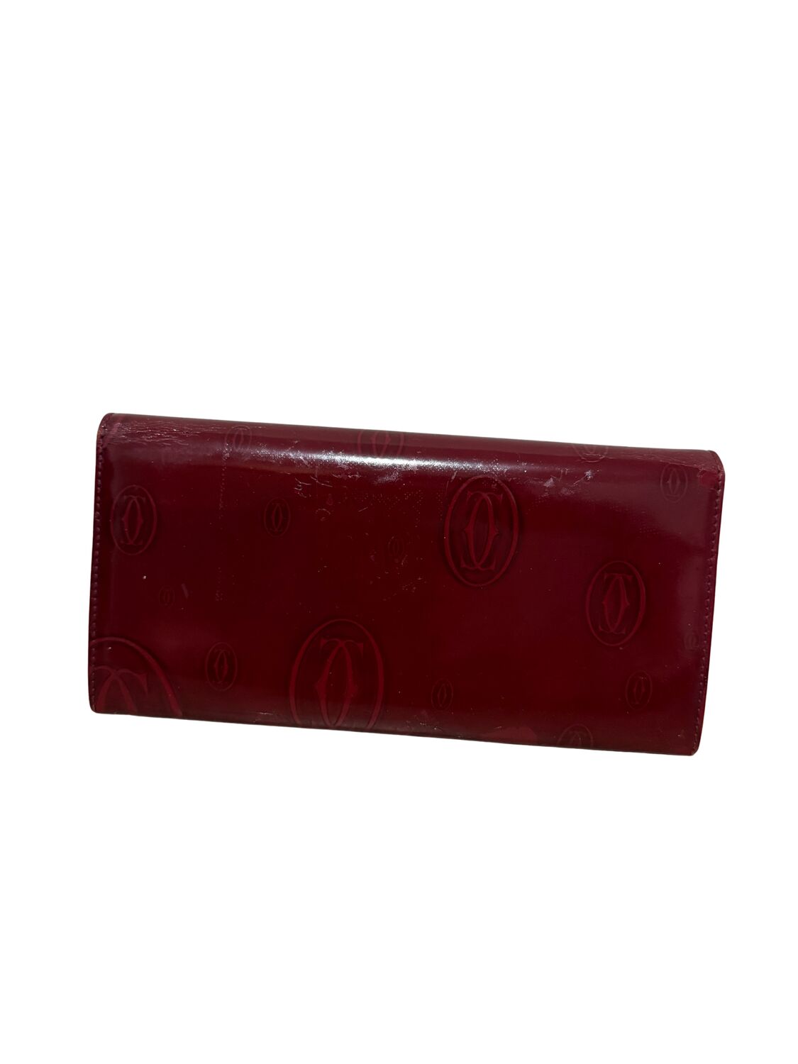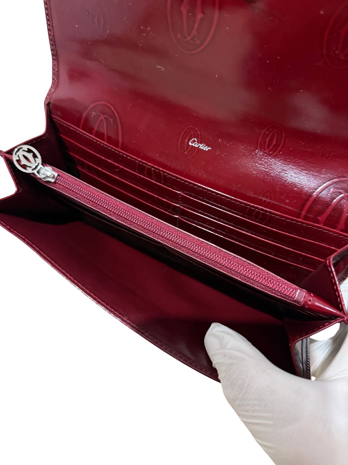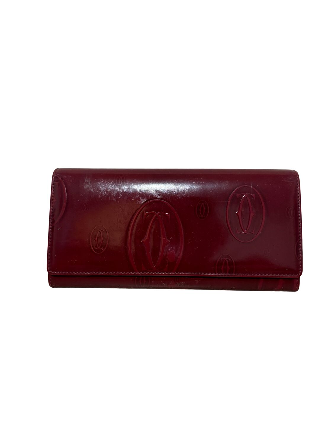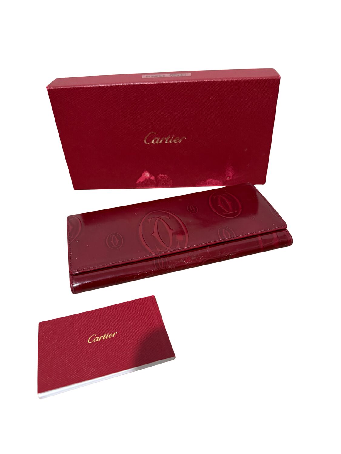 Carteira Cartier em couro envernizado com estampas clássicas da marca.