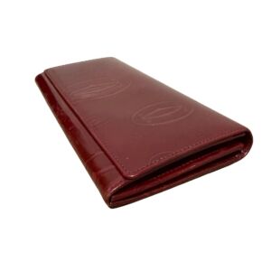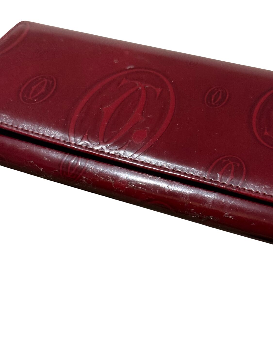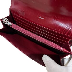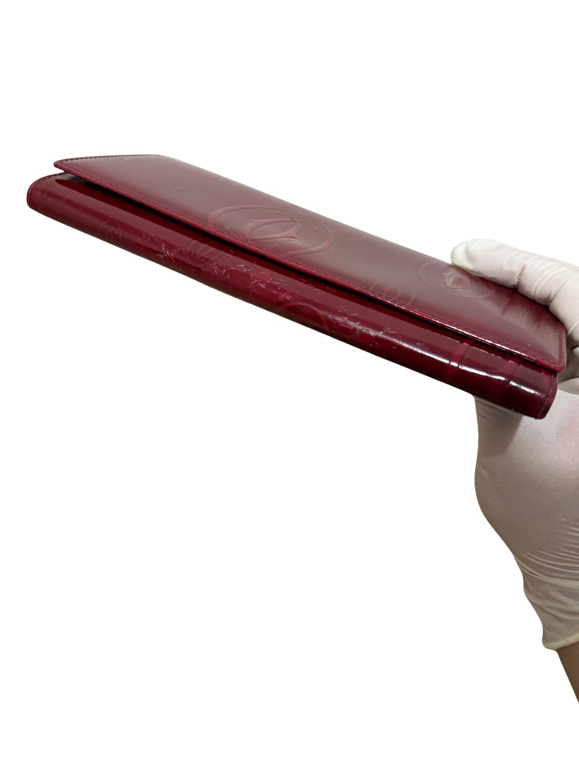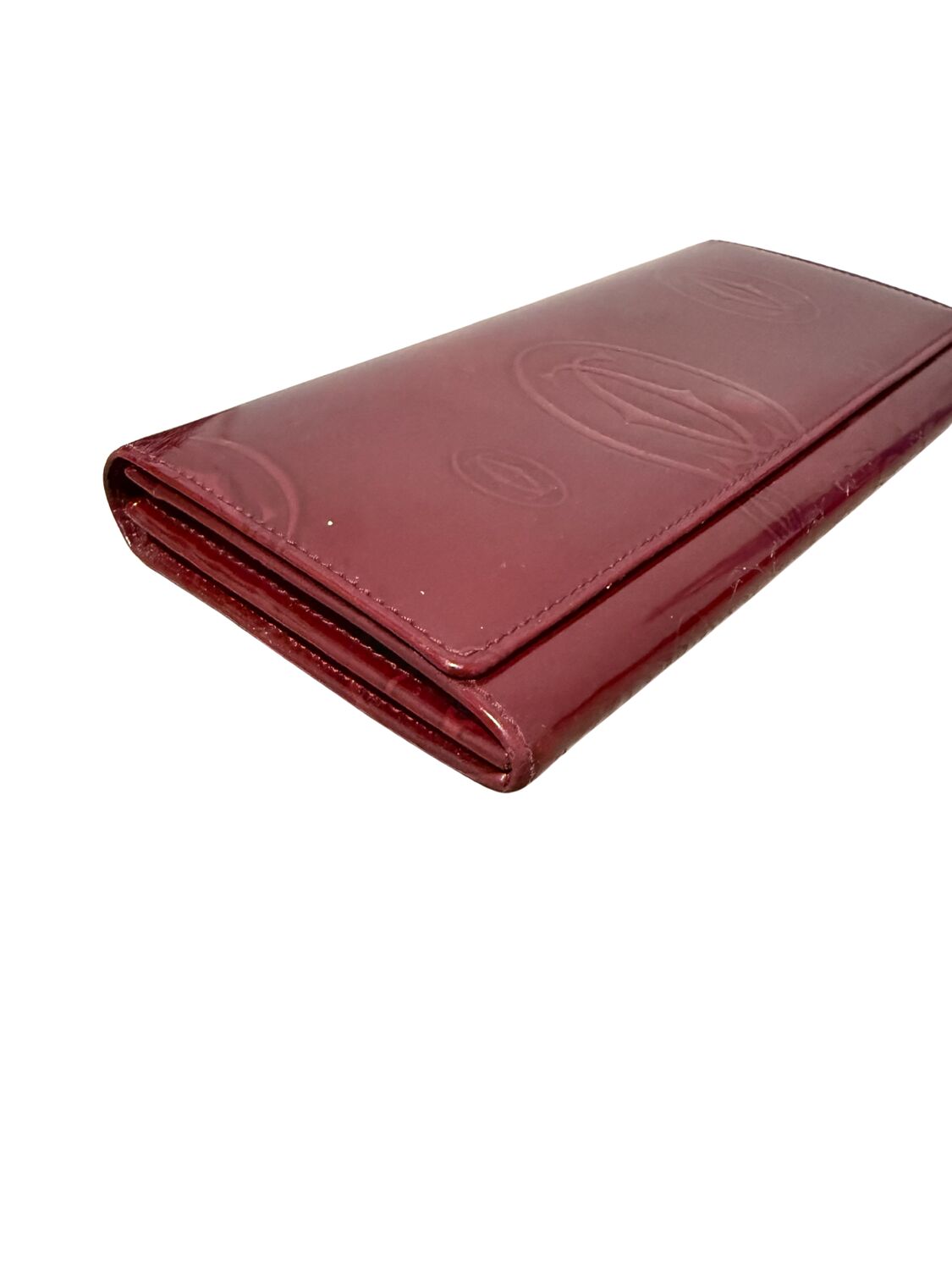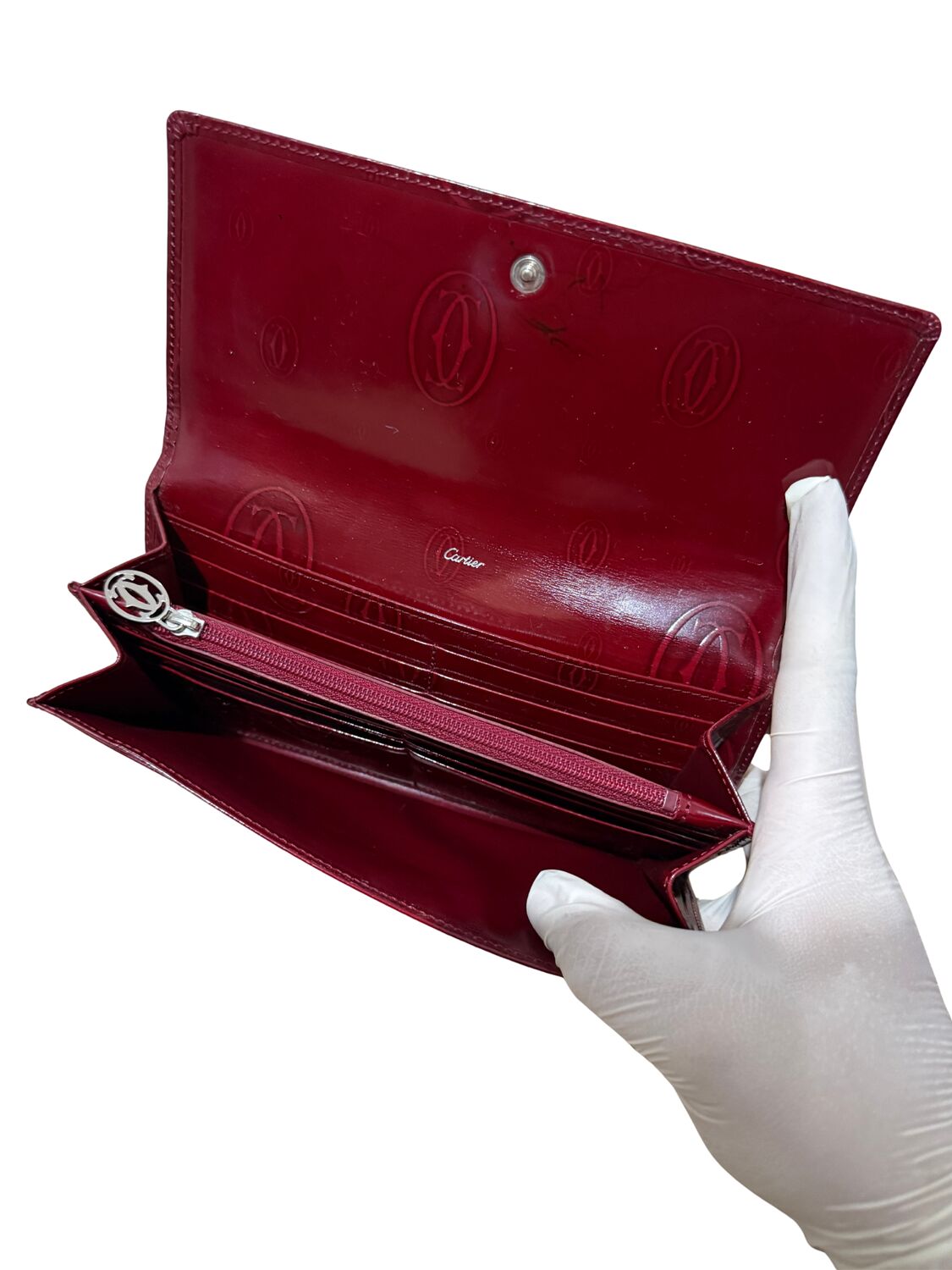 Carteira Cartier em couro envernizado com estampas clássicas da marca.