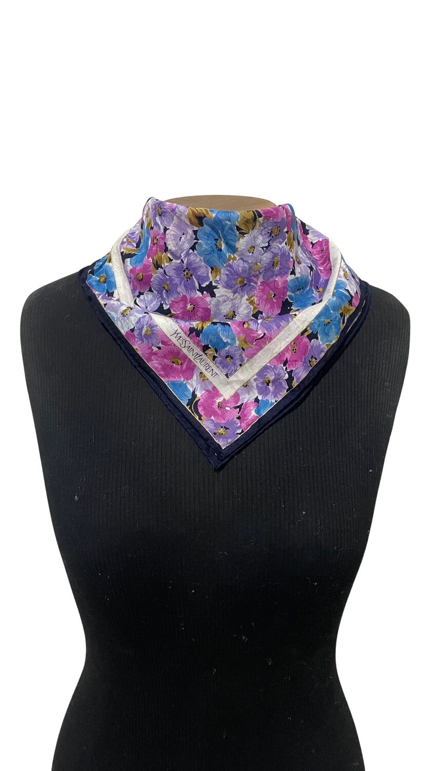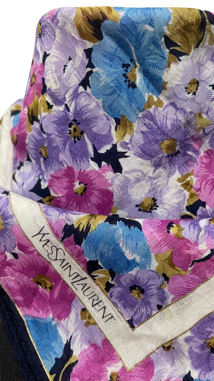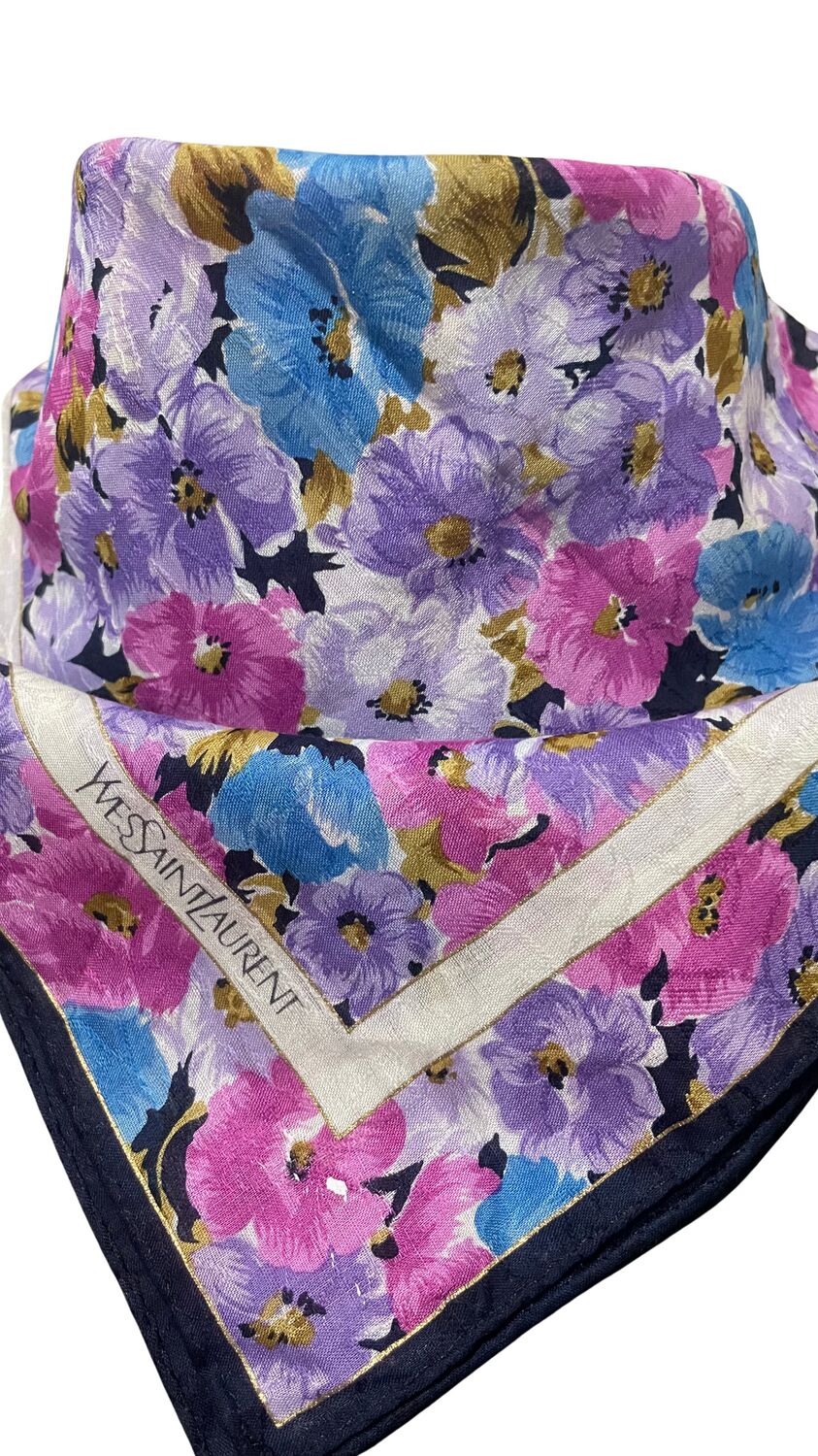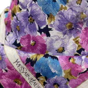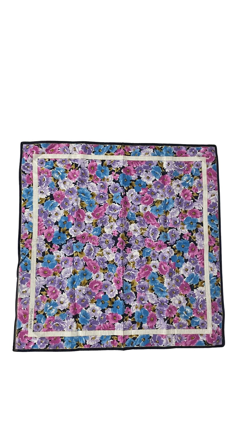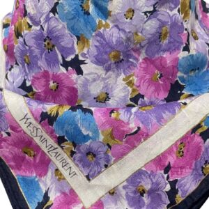 Lenço Saint Laurent estampado com flores e logo na ponta