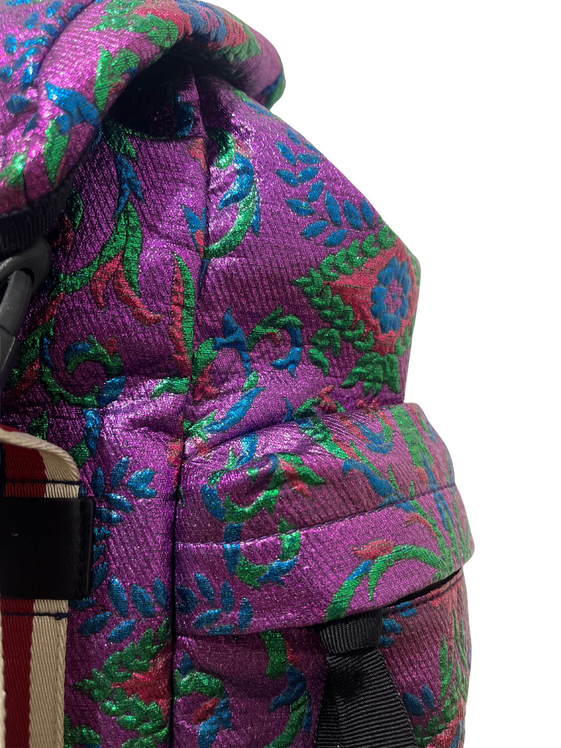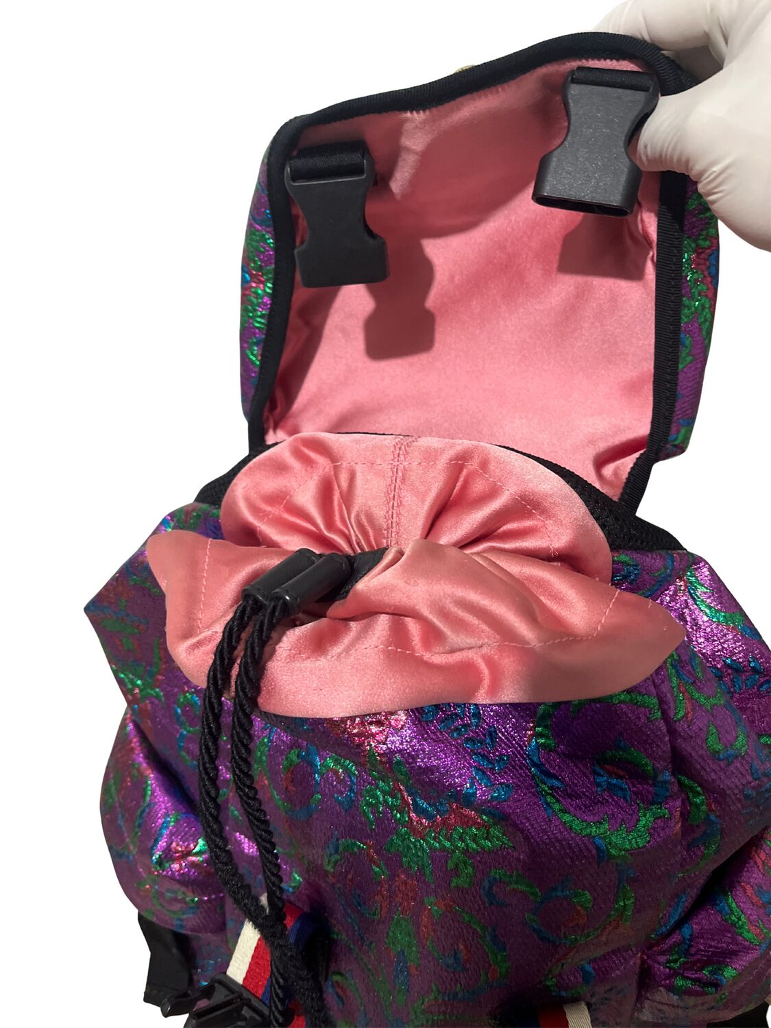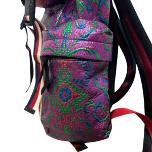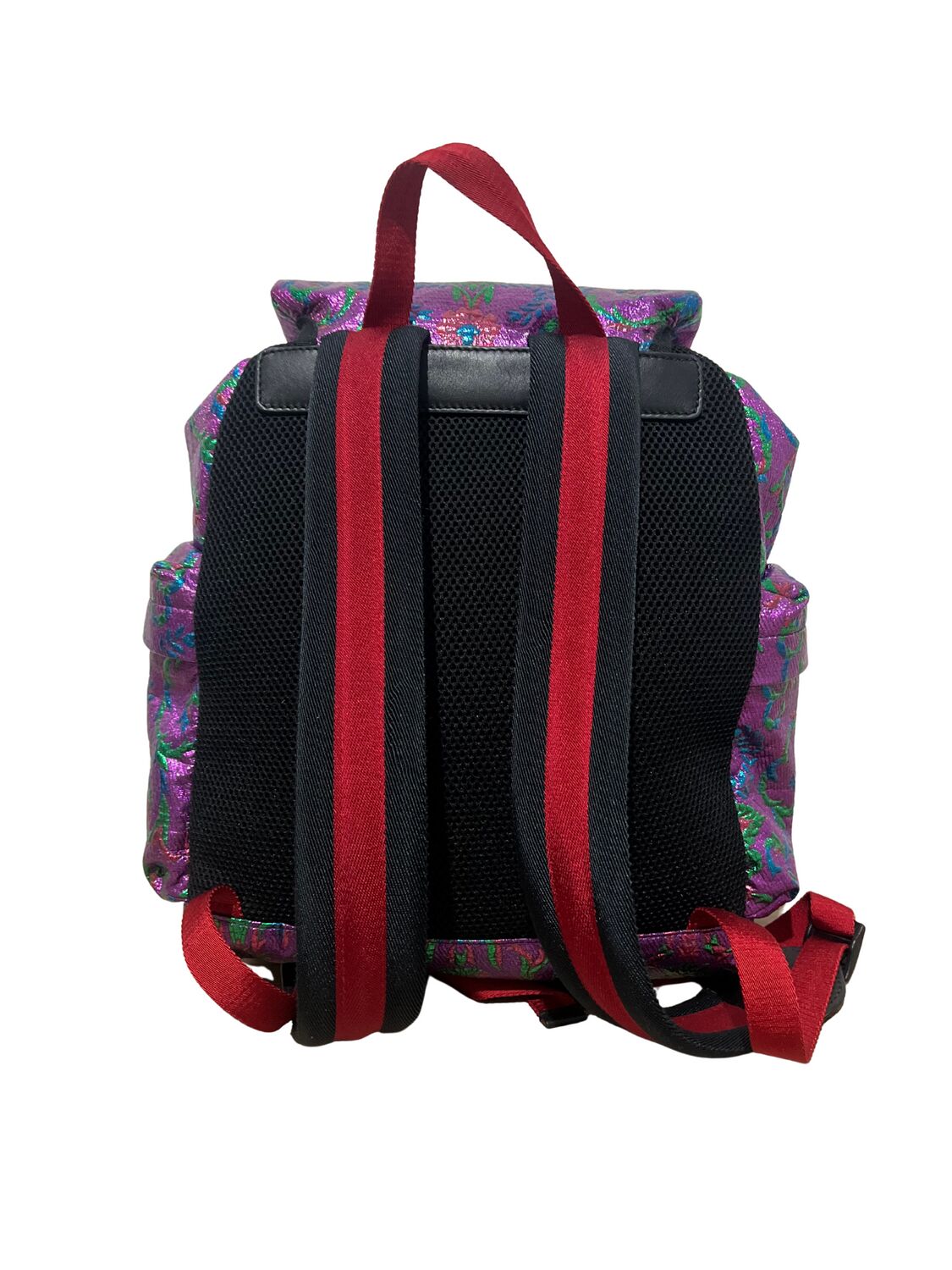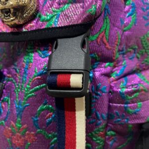 Mochila Gucci em tecido psicodélico com o tigre na aba principal.