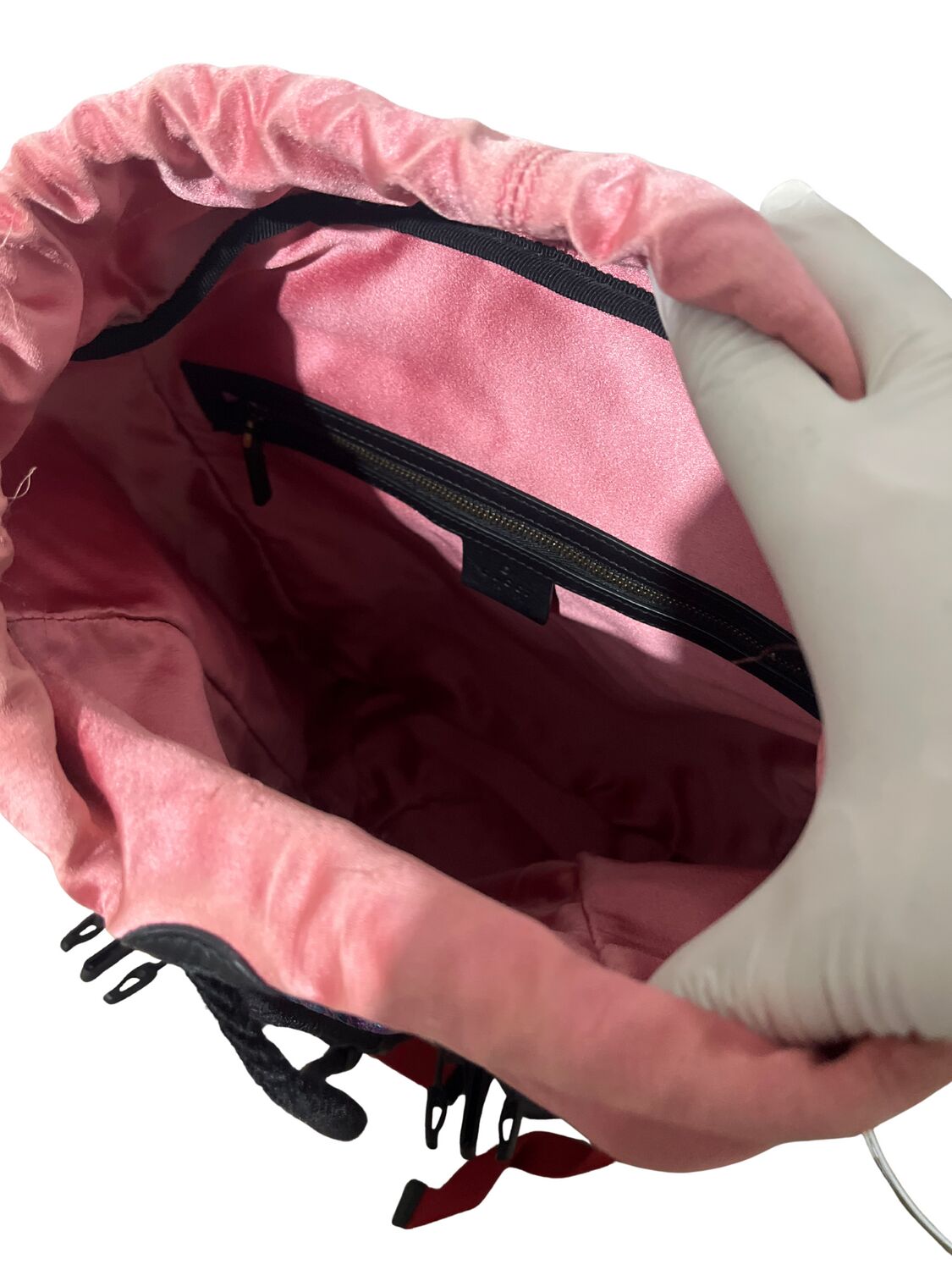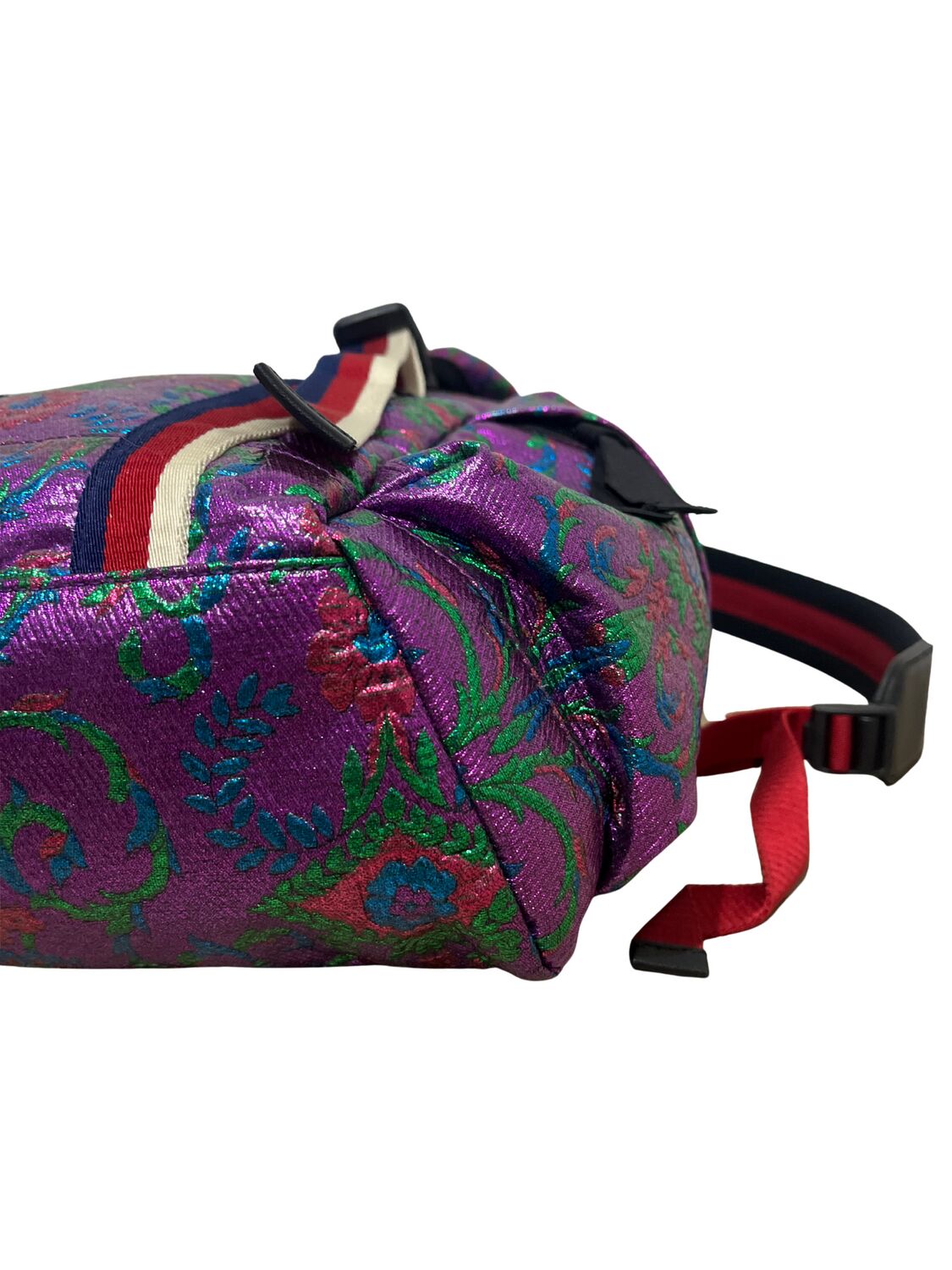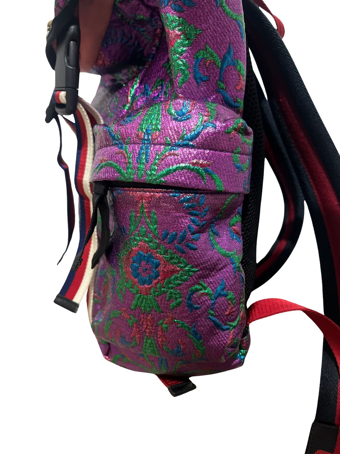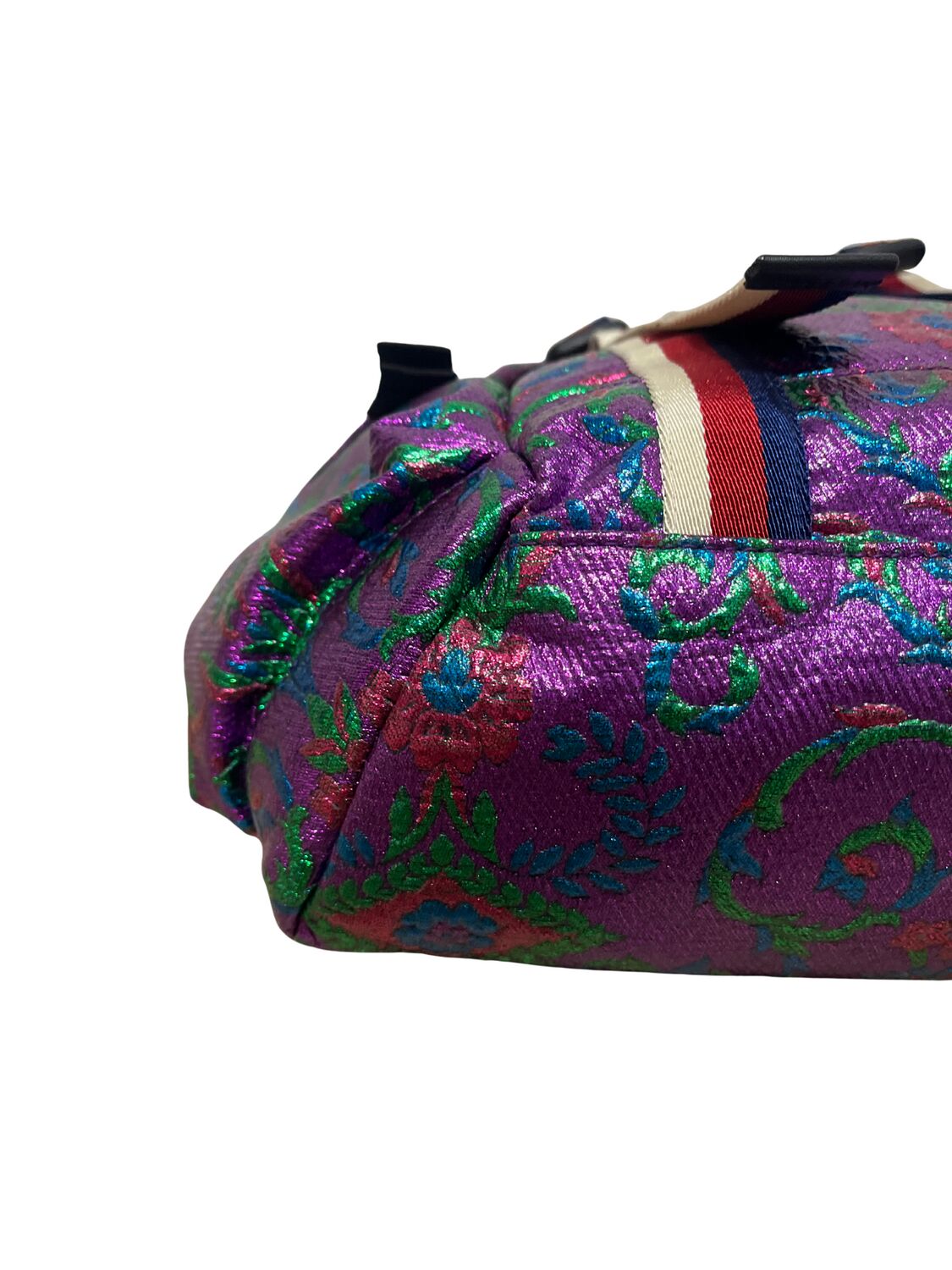 Mochila Gucci em tecido psicodélico com o tigre na aba principal.