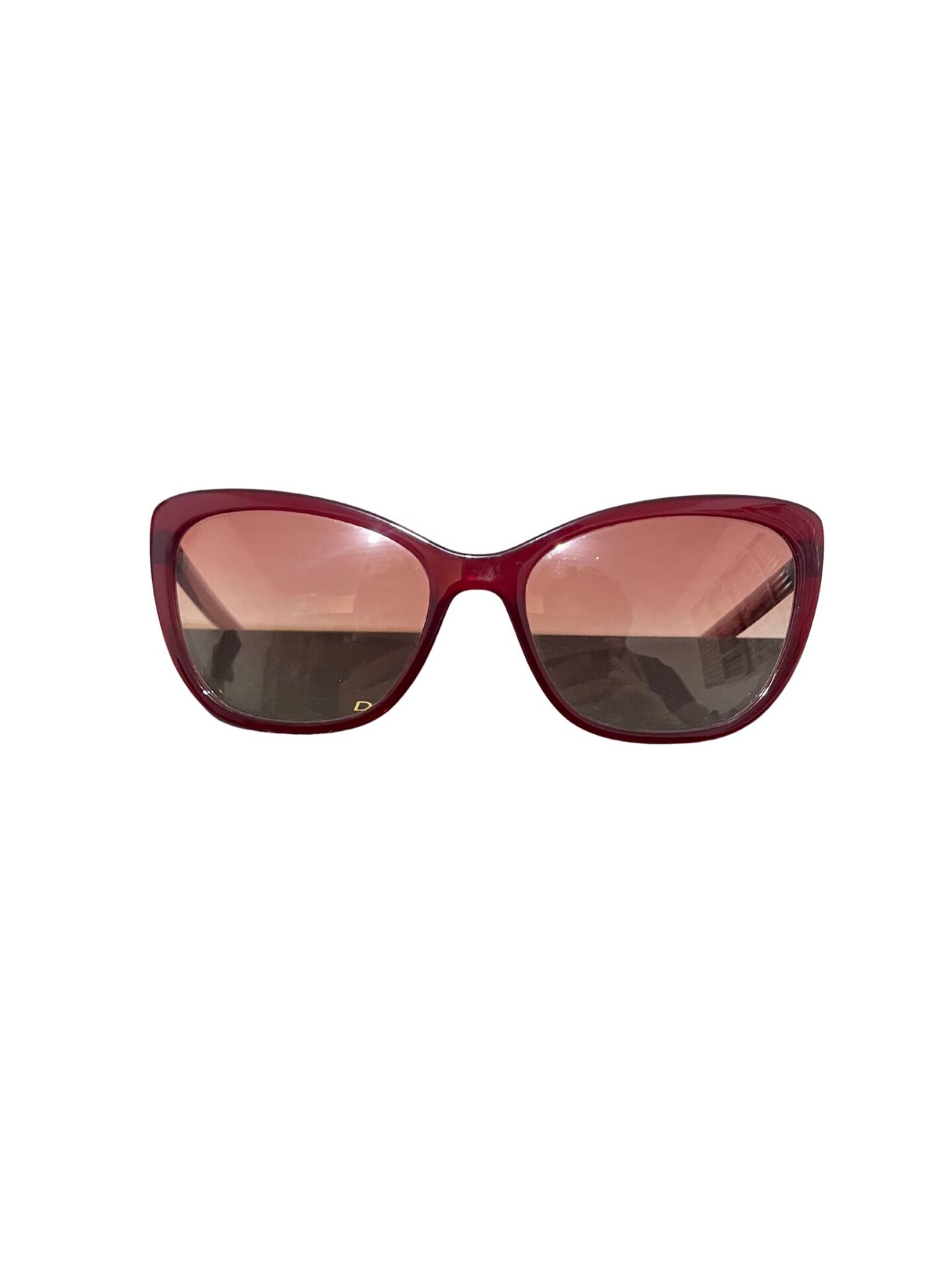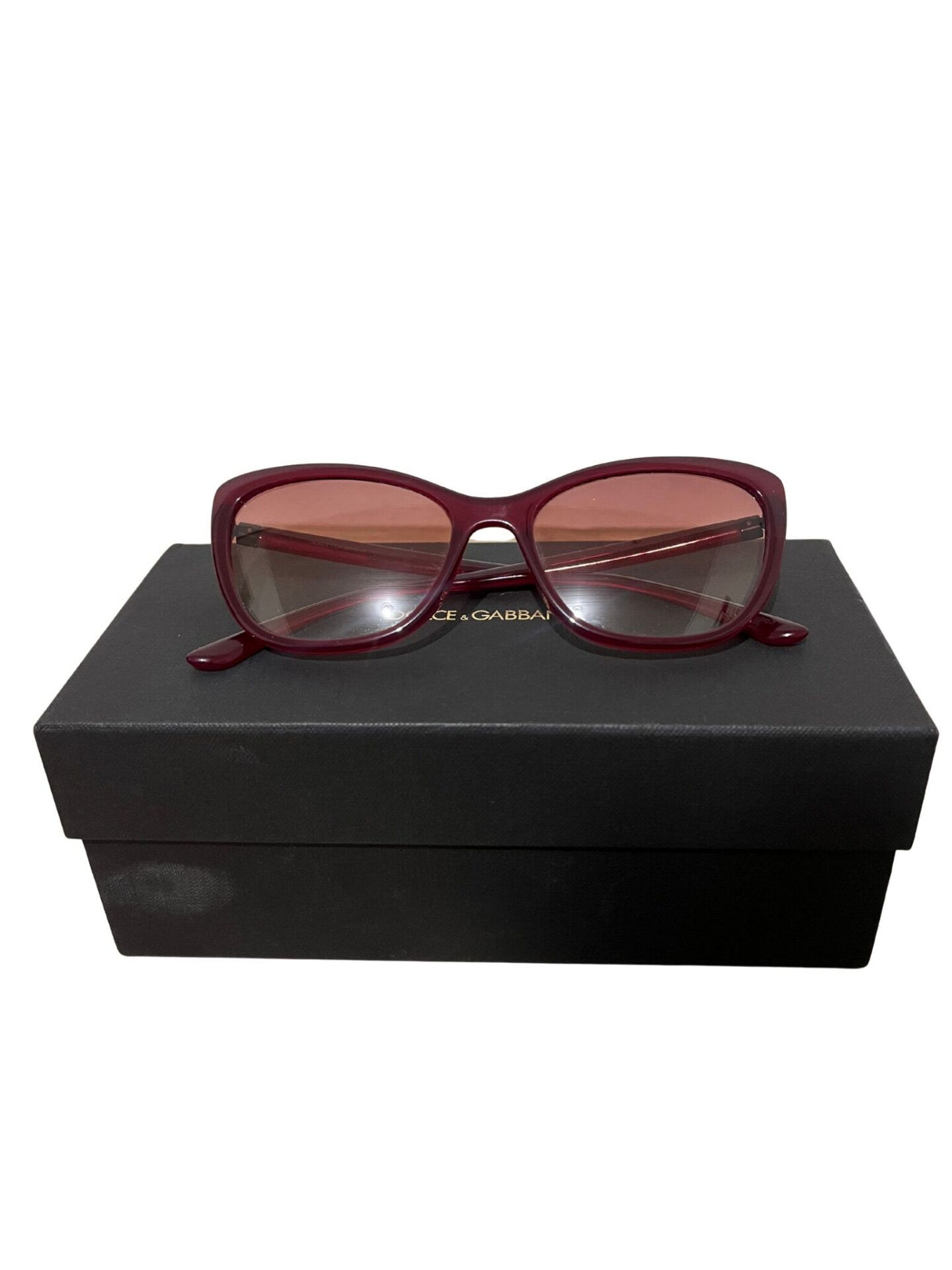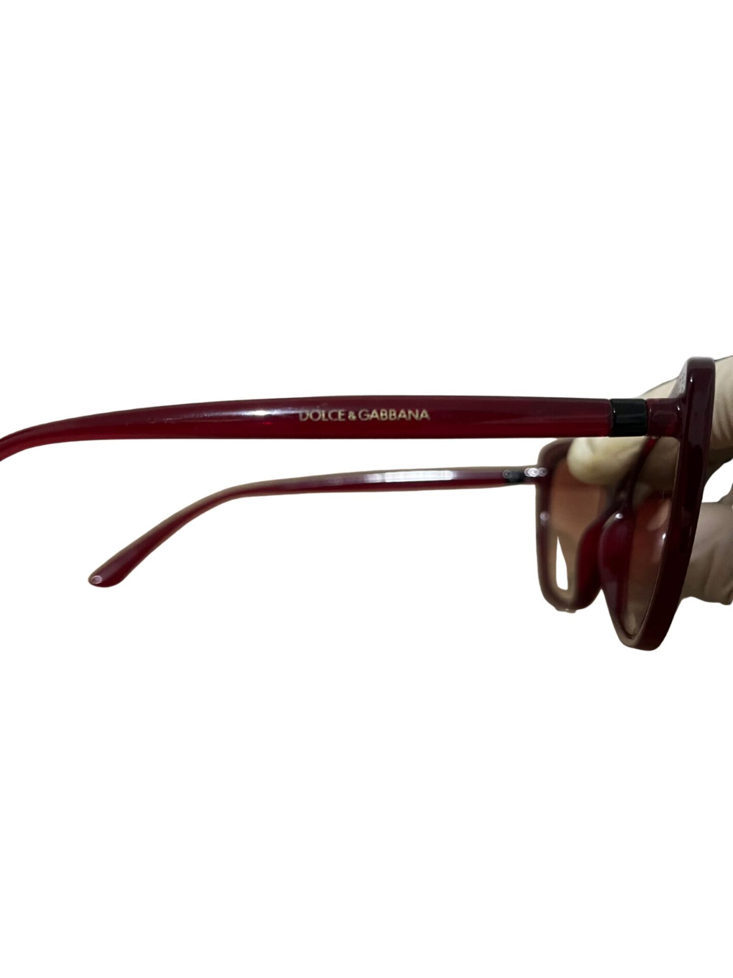 Óculos Dolce & Gabbana em acetato bordô e logo nas laterais.