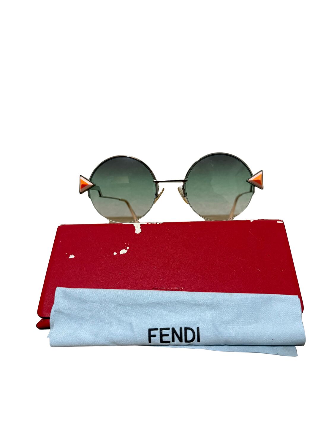 Óculos de sol Fendi com spikes laterais e lentes arredondas.