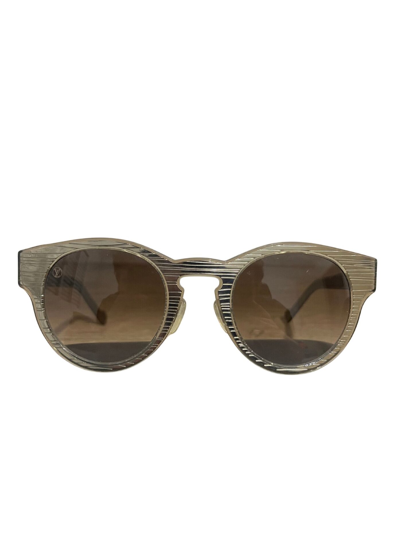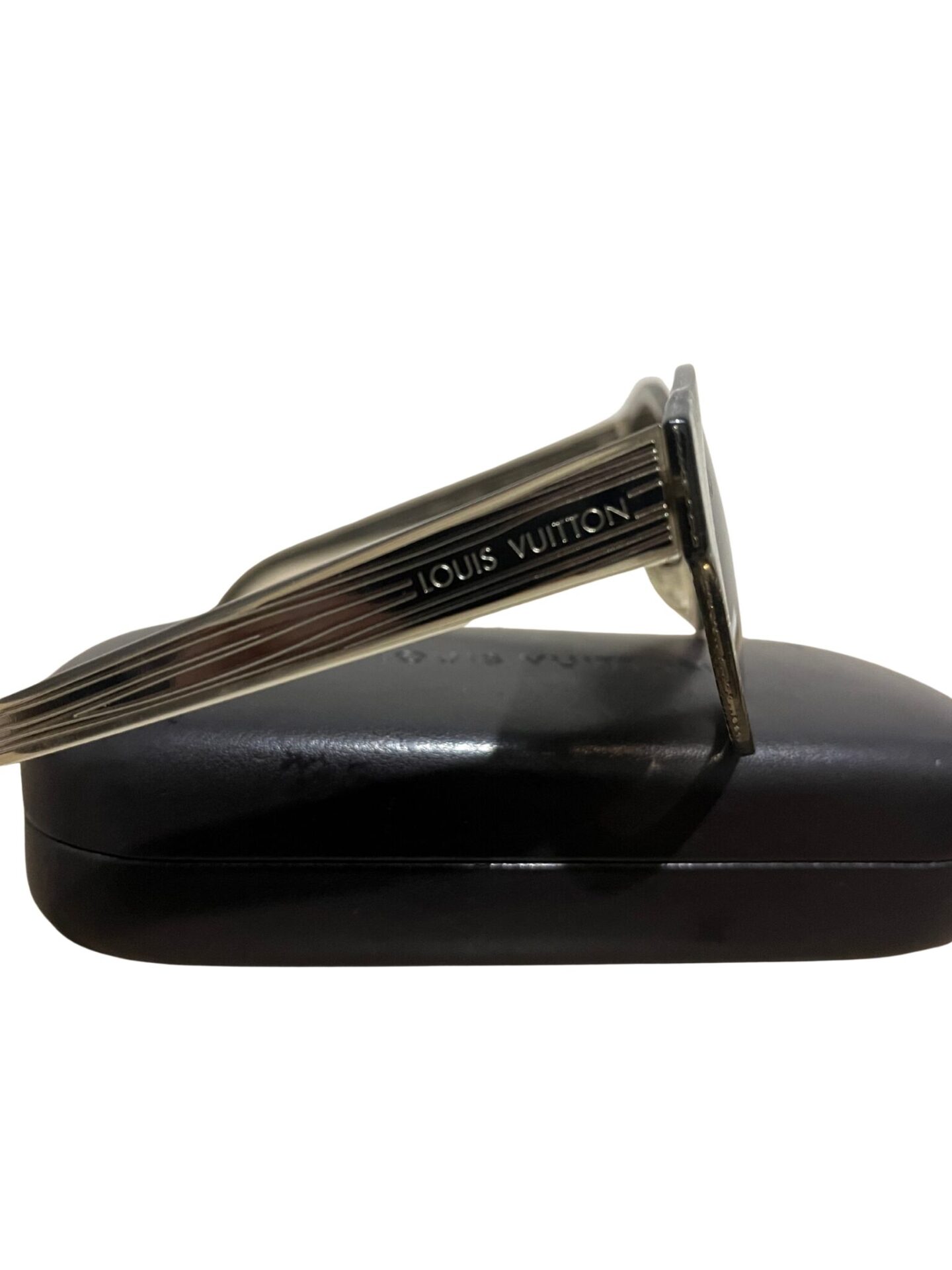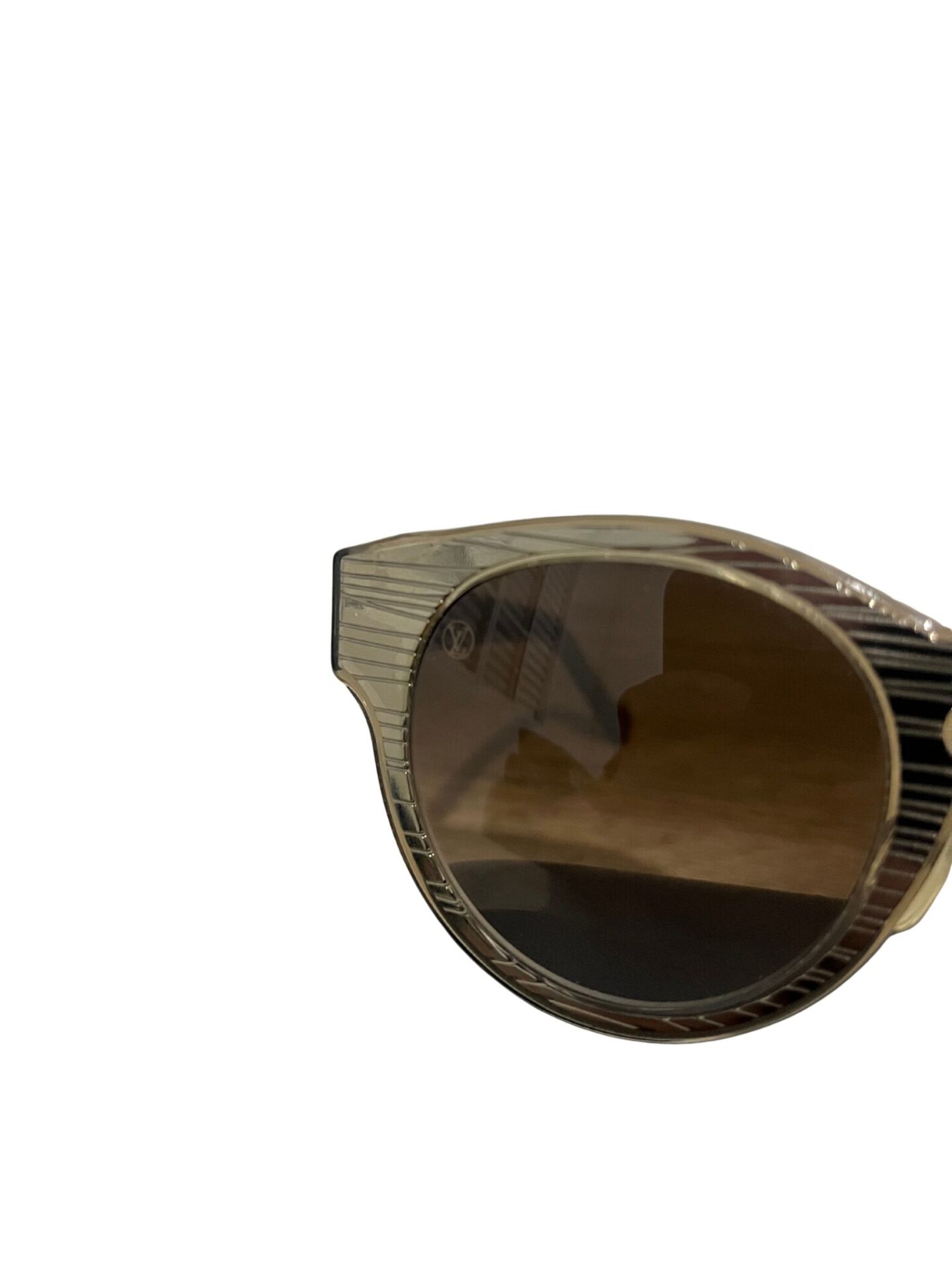 Óculos Louis Vuitton em acetado dourado e logo lateral.