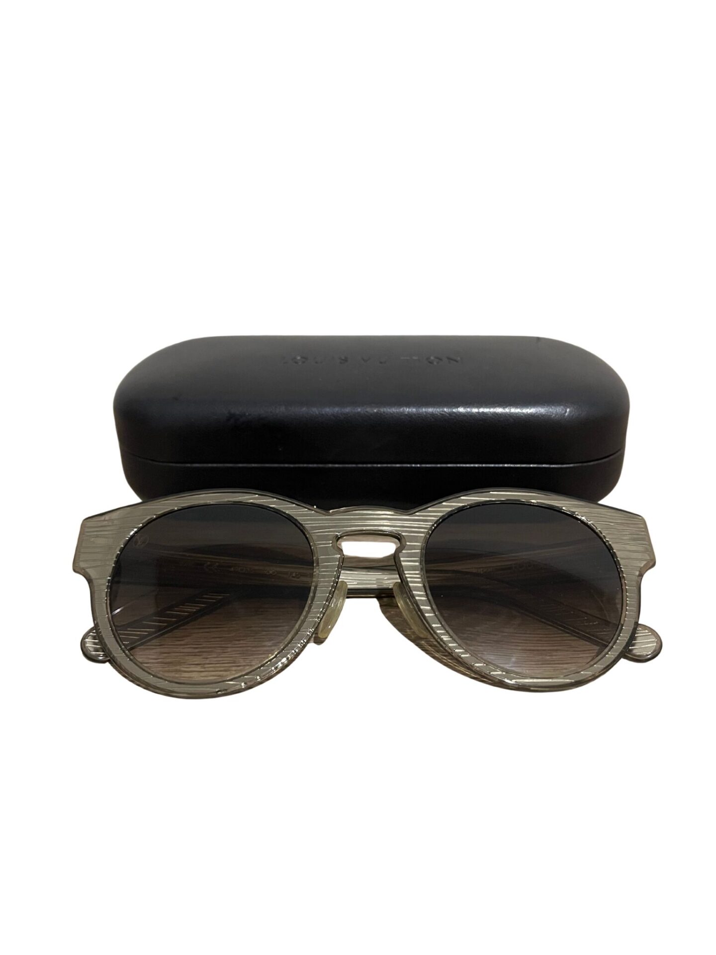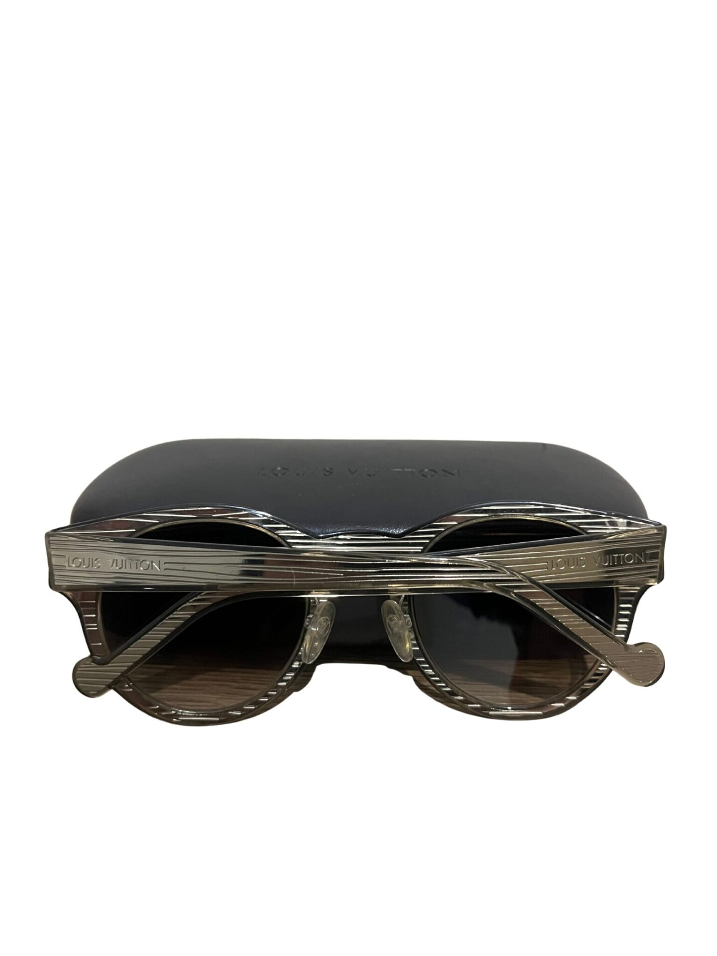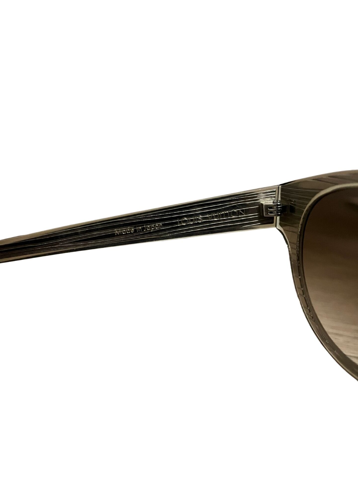 Óculos Louis Vuitton em acetado dourado e logo lateral.