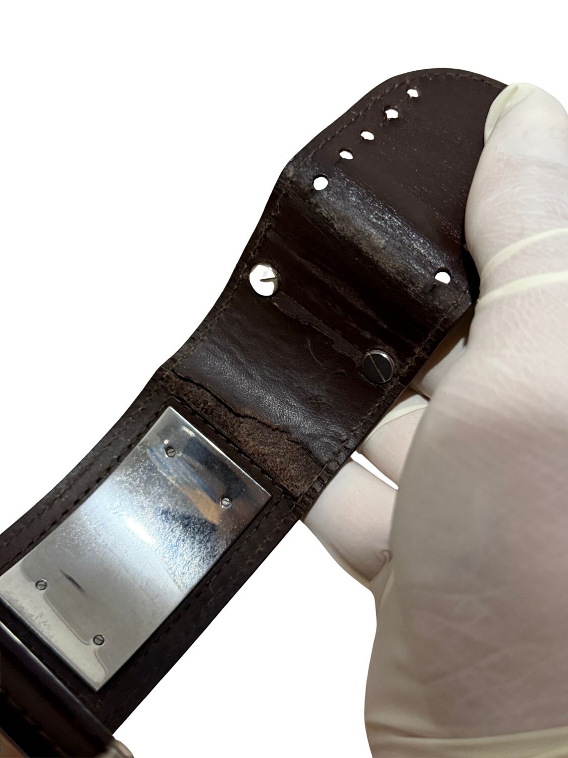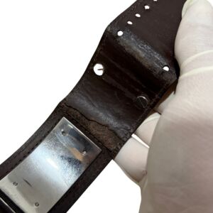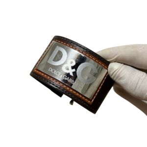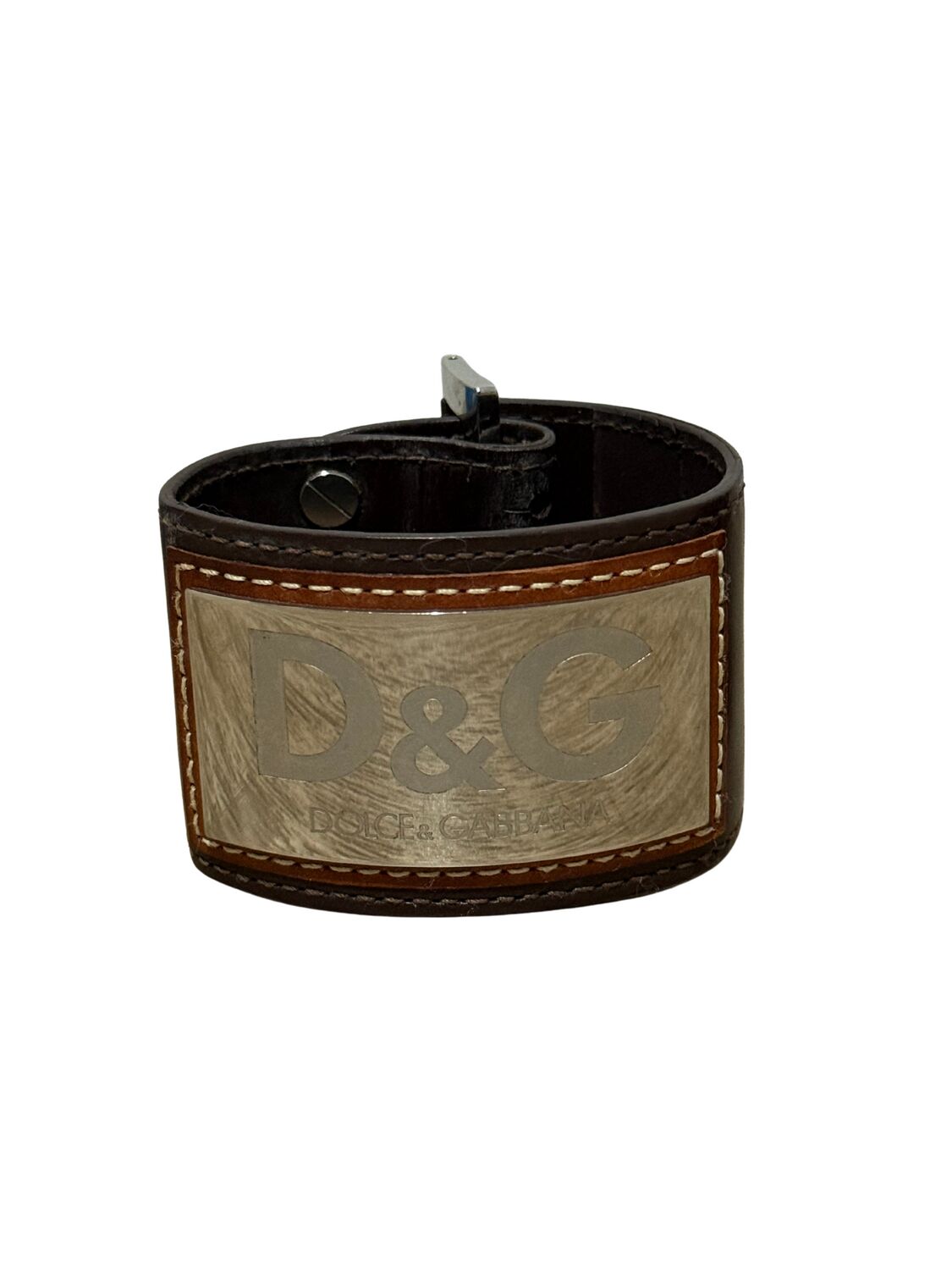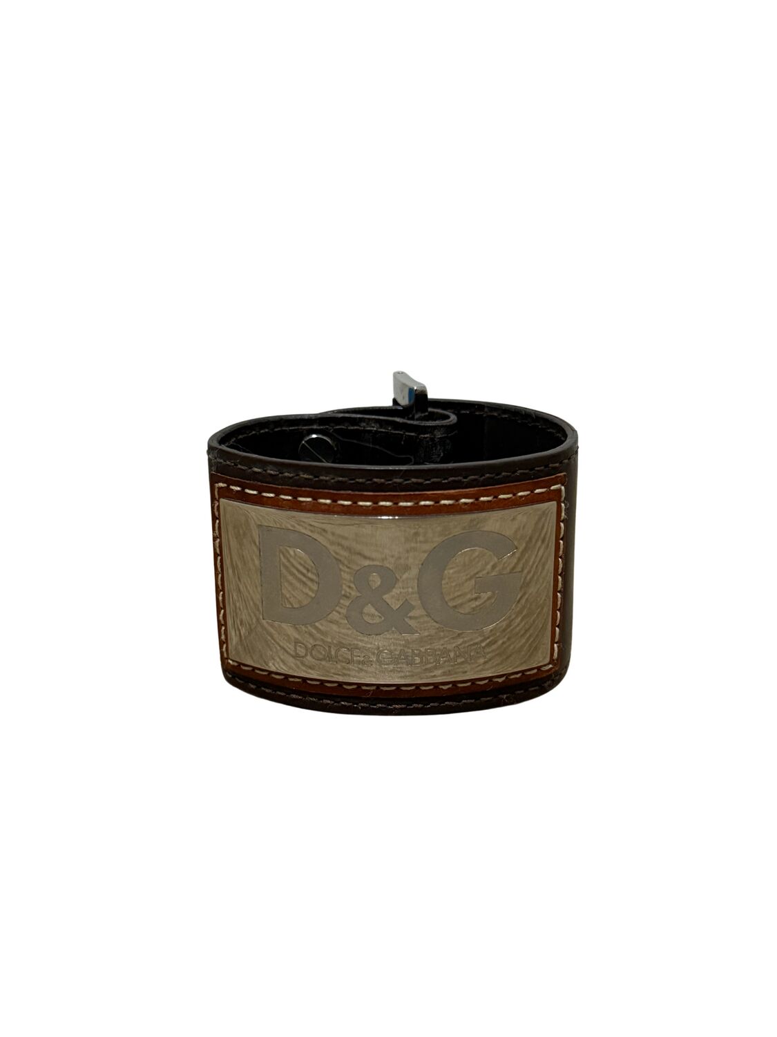 Pulseira Dolce & Gabbana em couro marrom e placa prateada.