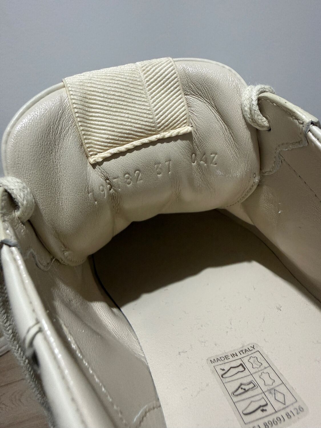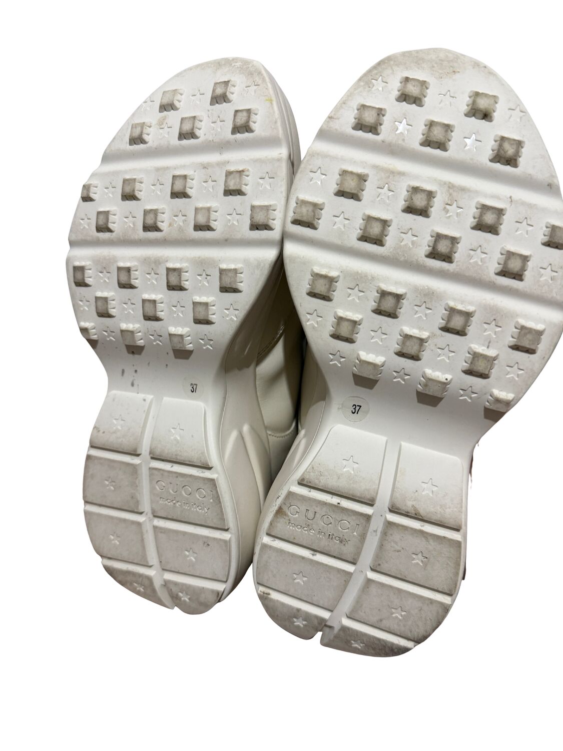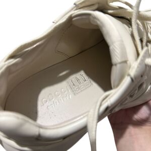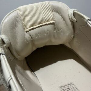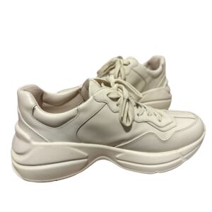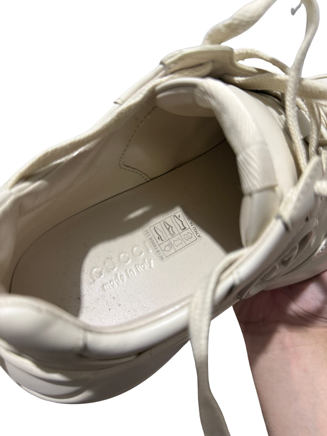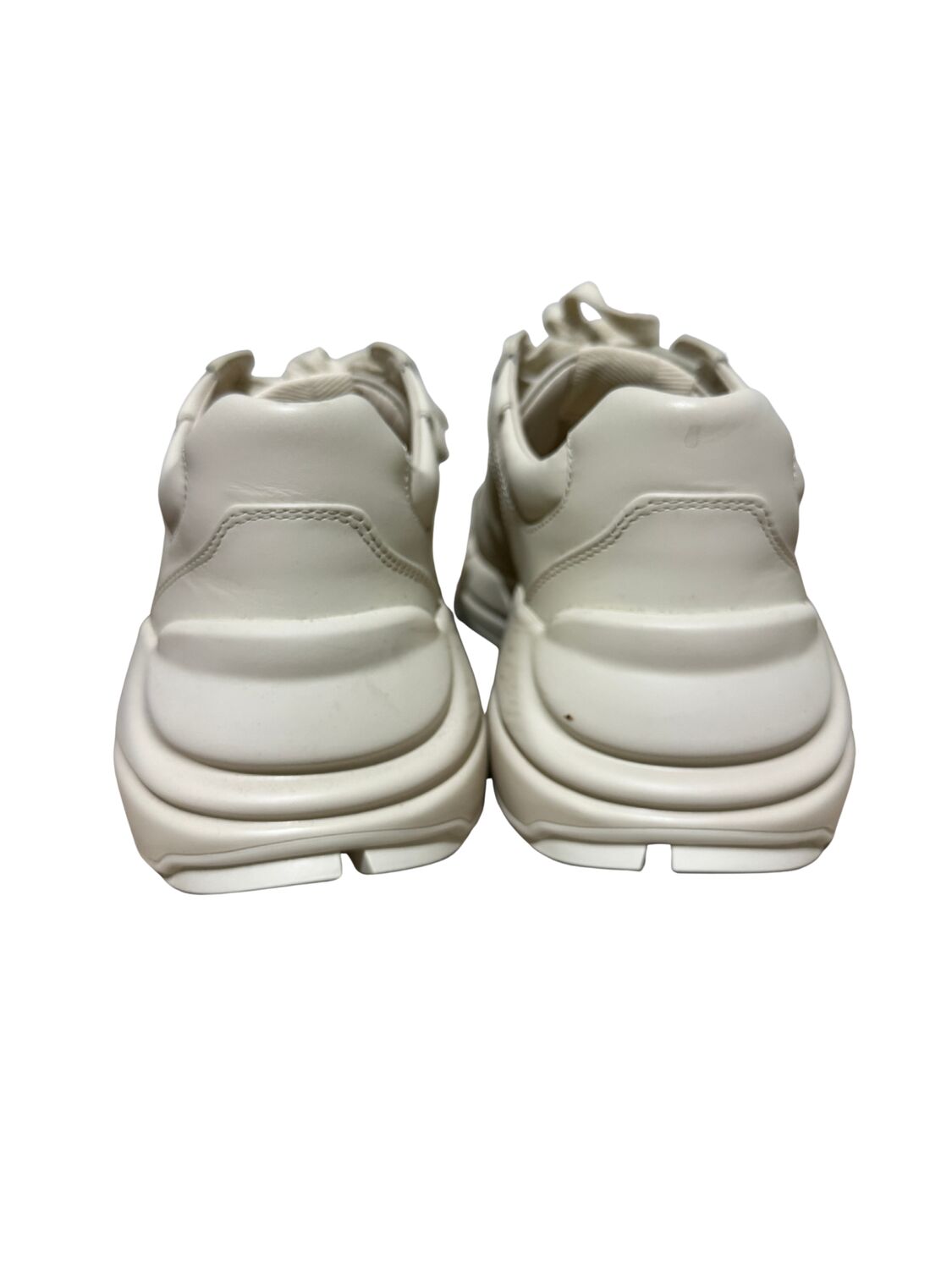Tênis Gucci modelo Rhyton em couro bege e logo na lateral.