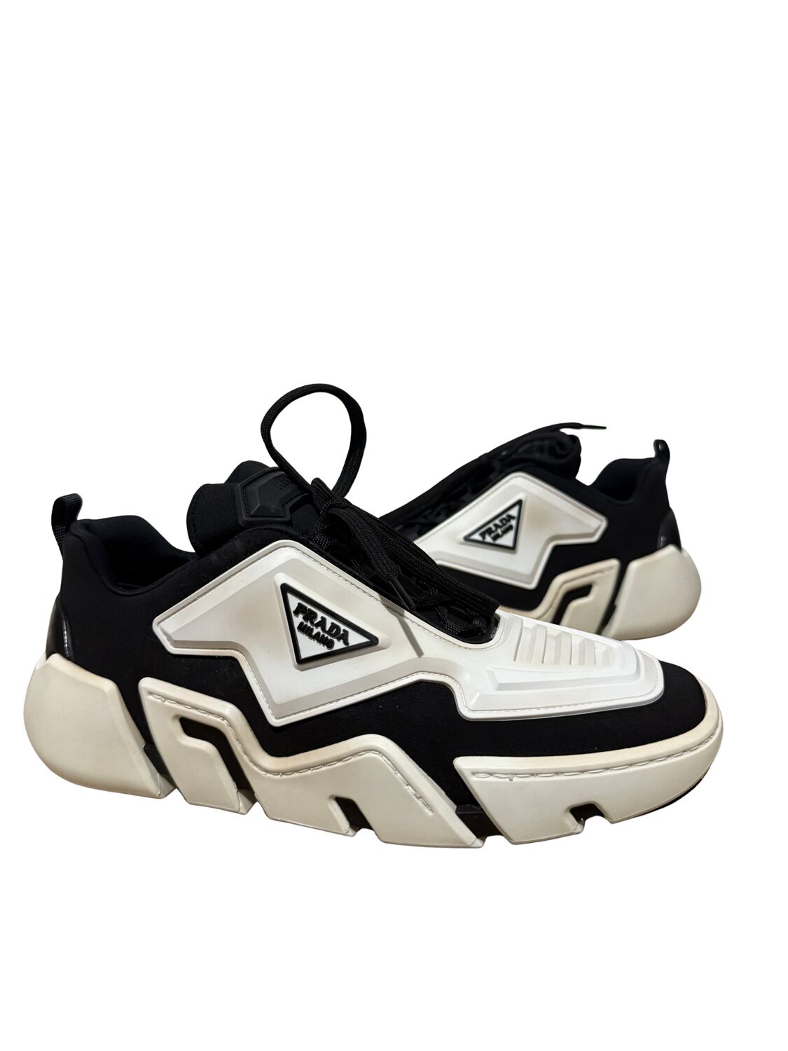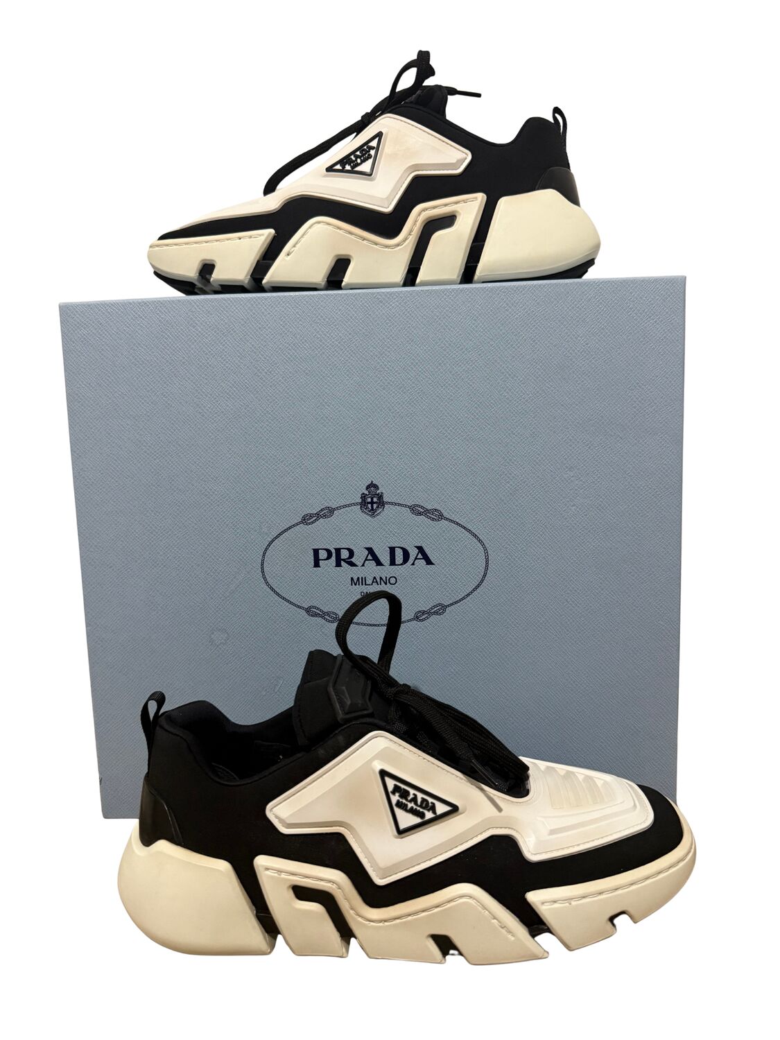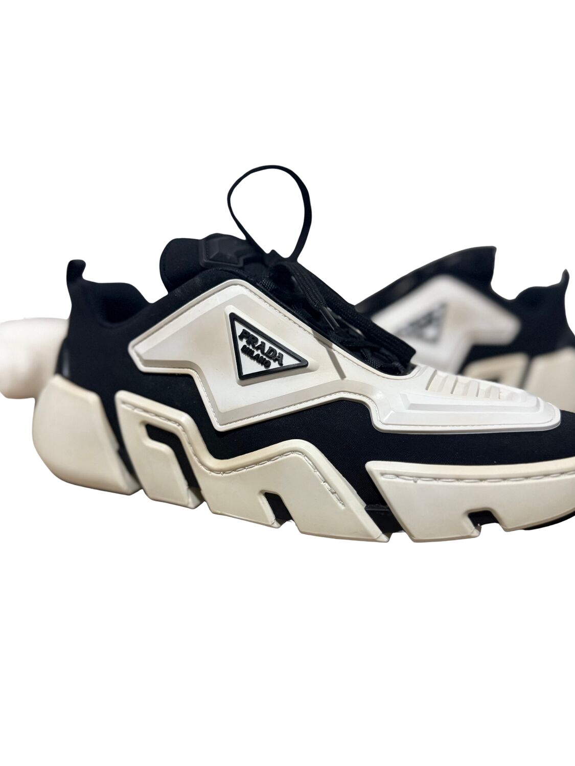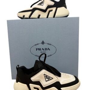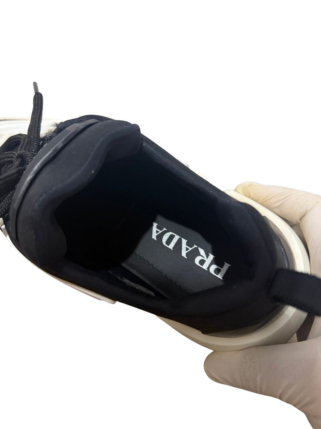 Tênis Prada modelo Techno Strech, com solado robusto.